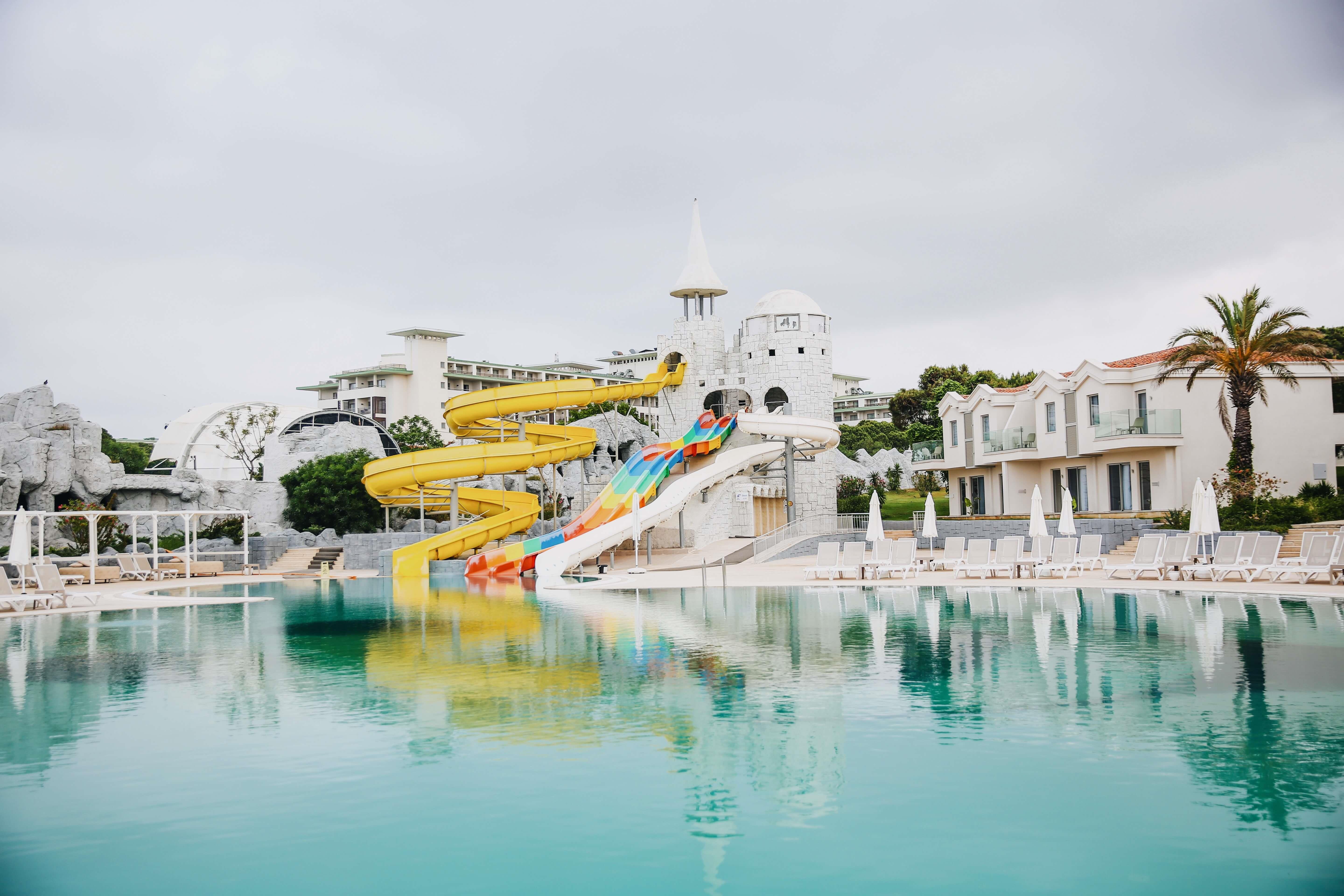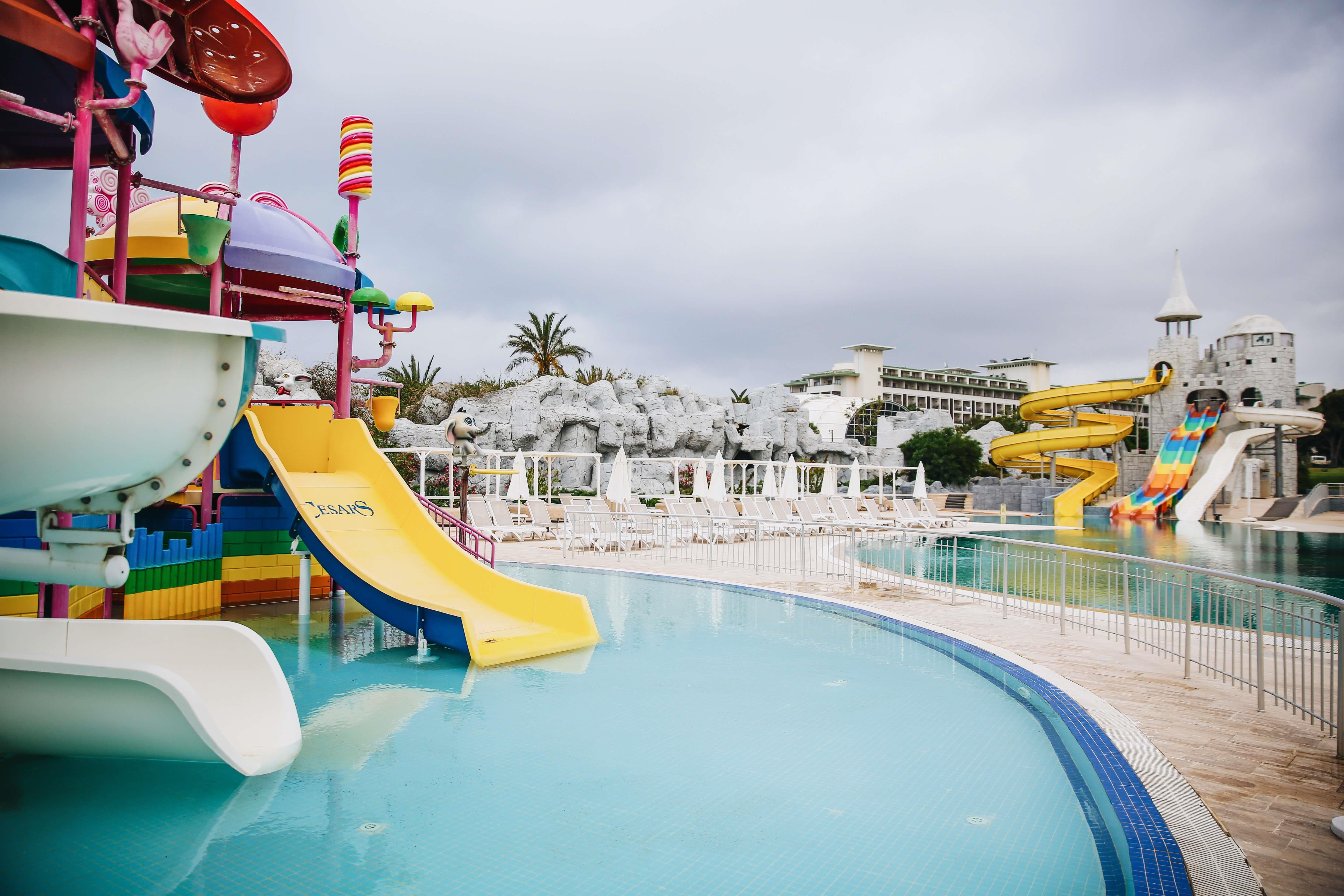 На территории комплекса располагаются три открытых искусственных водоема для купания, один из которых оборудован водными горками, а также крытый бассейн с подогревом. Лягушатник находится на большой и красочной территории детского клуба. Как и игровую площадку, его закрывает от солнца парусиновый навес. В клуб принимаются дети от двух до шестнадцати лет, которые объединяются в группы по возрастам и интересам. В клубе предусмотрены комната для сна, специализированный ресторан и даже бар, а также множество развлечений, включая мини-кинотеатр и карусель.