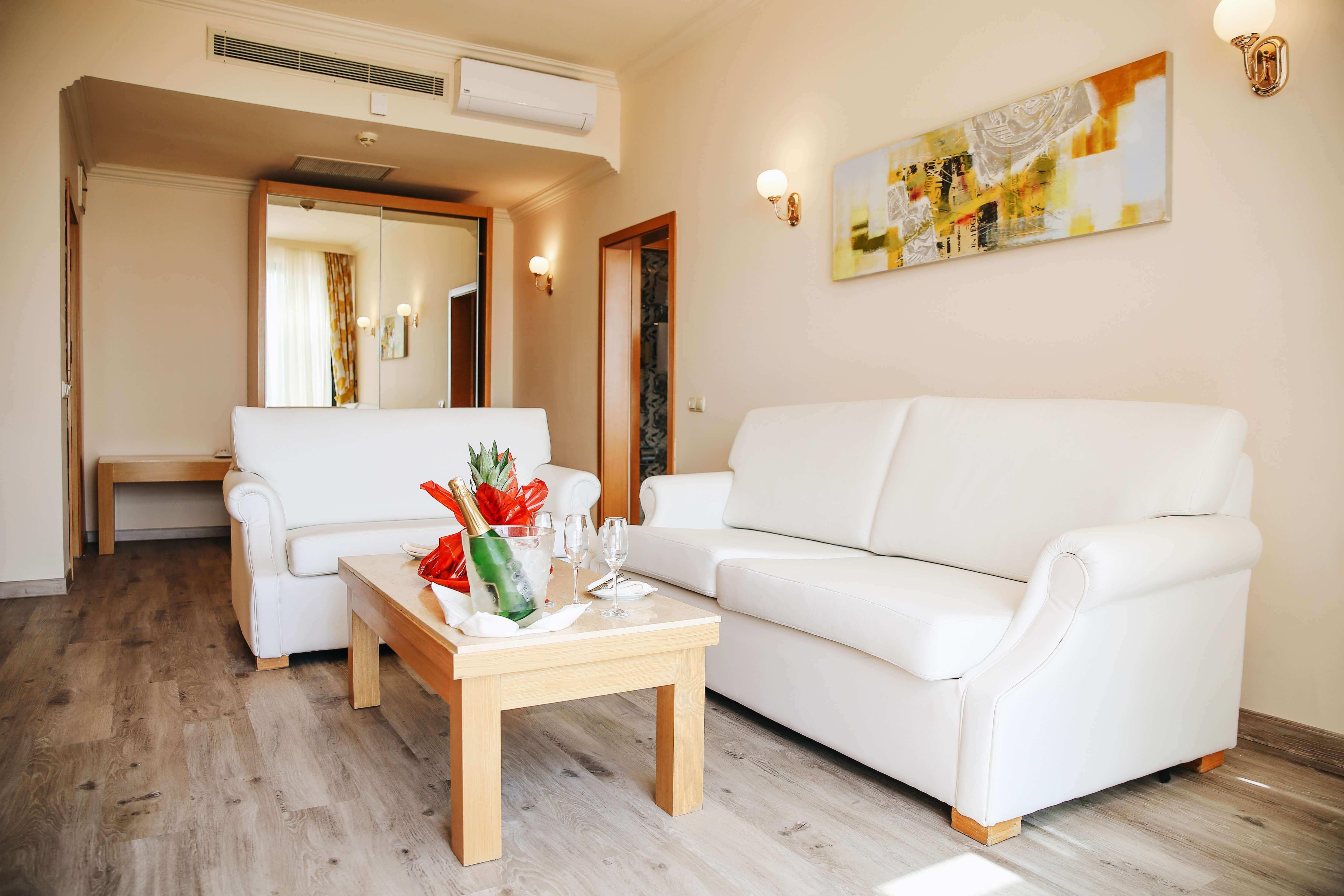 Многочисленные гости размещаются в четырехэтажном основном здании и в сорока виллах на два и три этажа. Жилые помещения отремонтированы зимой 2012–2013 годов. Оформленные в современном стиле, они встречают сегодняшних постояльцев солнечным светом и детально проработанным дизайном. Гости с первых дней отмечают качество новых ортопедических матрасов, рады бесплатному доступу в Интернет и наборам для приготовления горячих напитков в каждом номере.