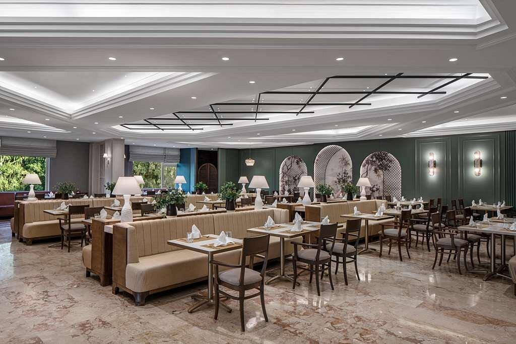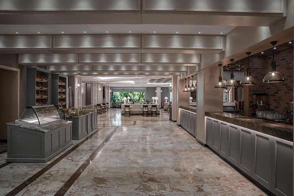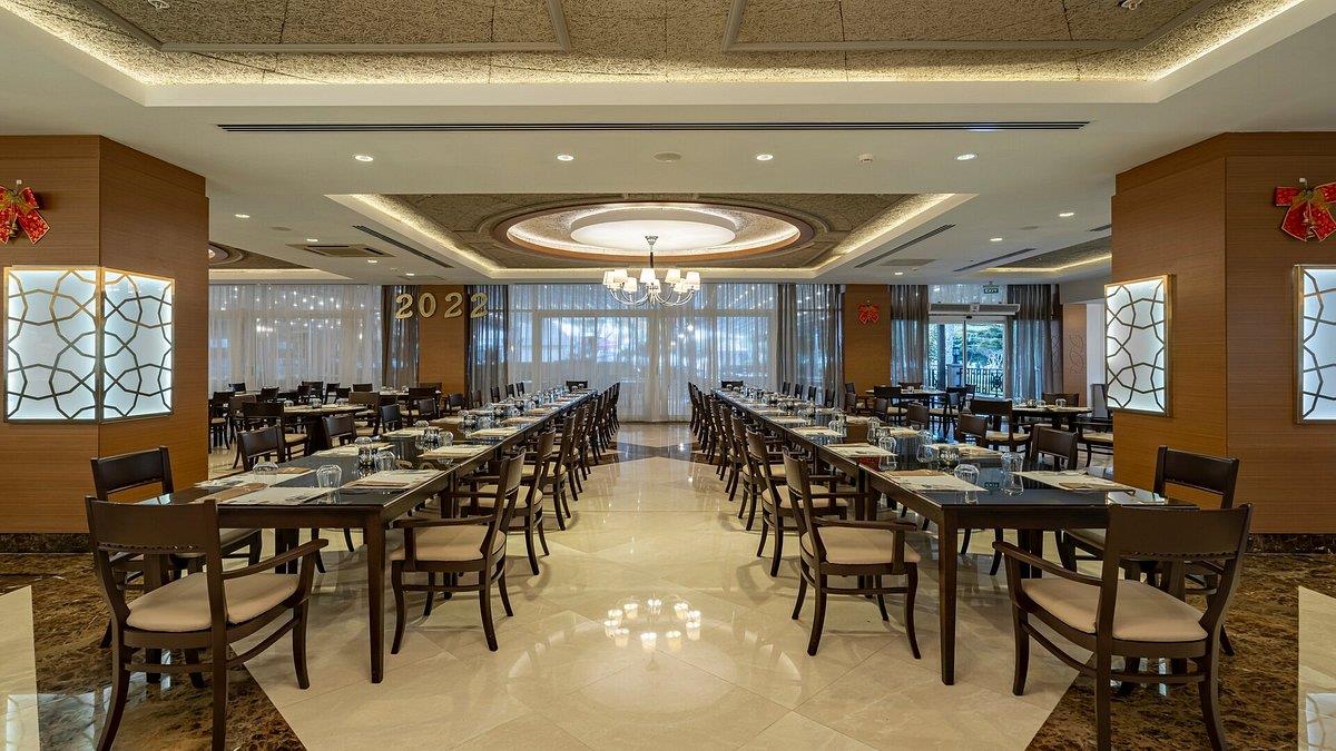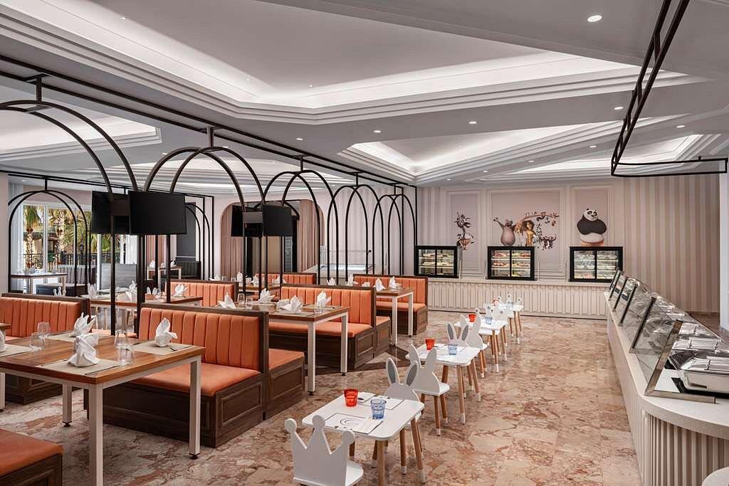 В ресторане Aspendos сервируют шведский стол на завтрак, поздний завтрак, обед, ужин и поздний ужин (здесь есть детское меню), в Dragon подают по меню блюда китайской кухни, а в Dolce Vita – итальянской. В барах и кафе представлен большой выбор закусок и напитков.