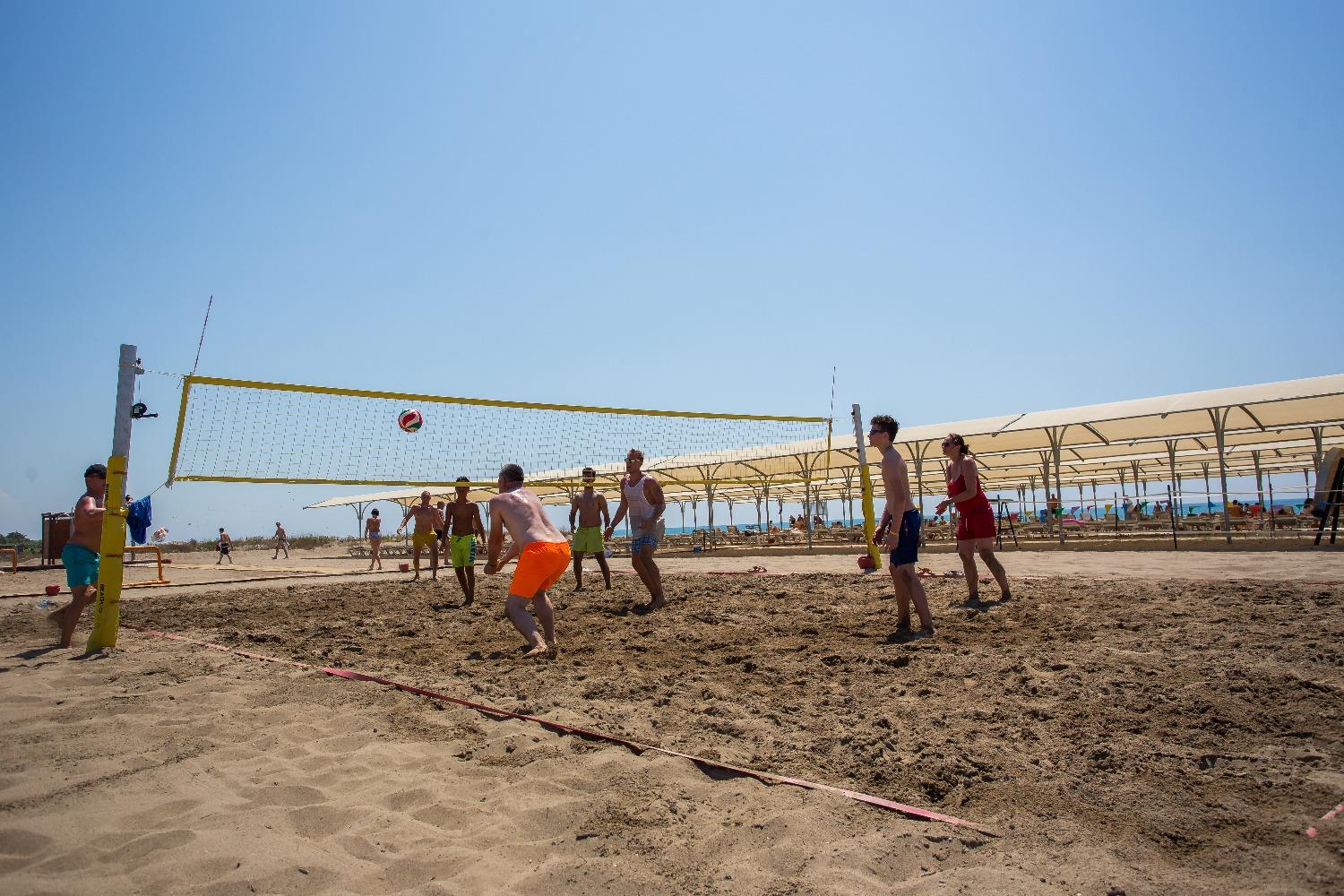 На пляже созданы условия для занятий водными видами спорта, обустроена площадка для волейбола.