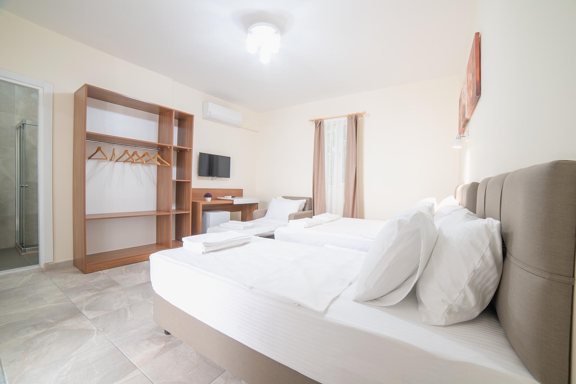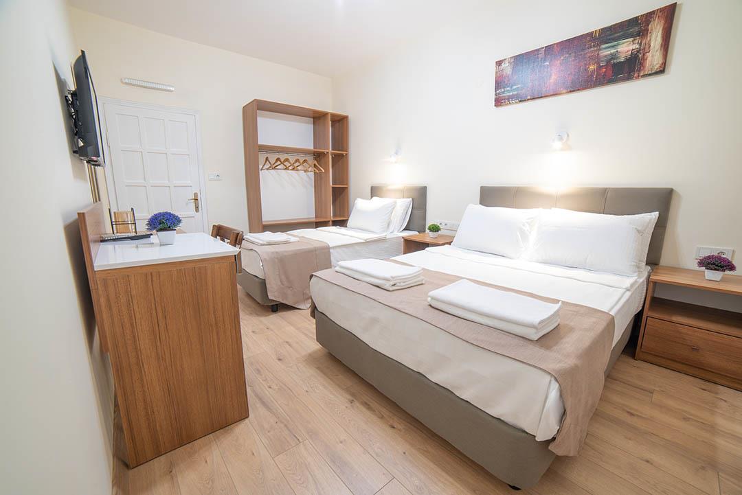Triple Room – 20 кв. м., максимальное размещение 3 человека. В номере есть двуспальная и односпальная кровати.