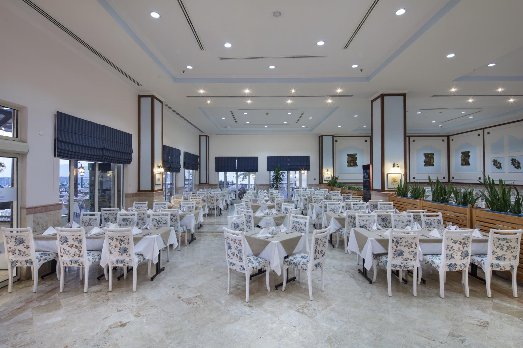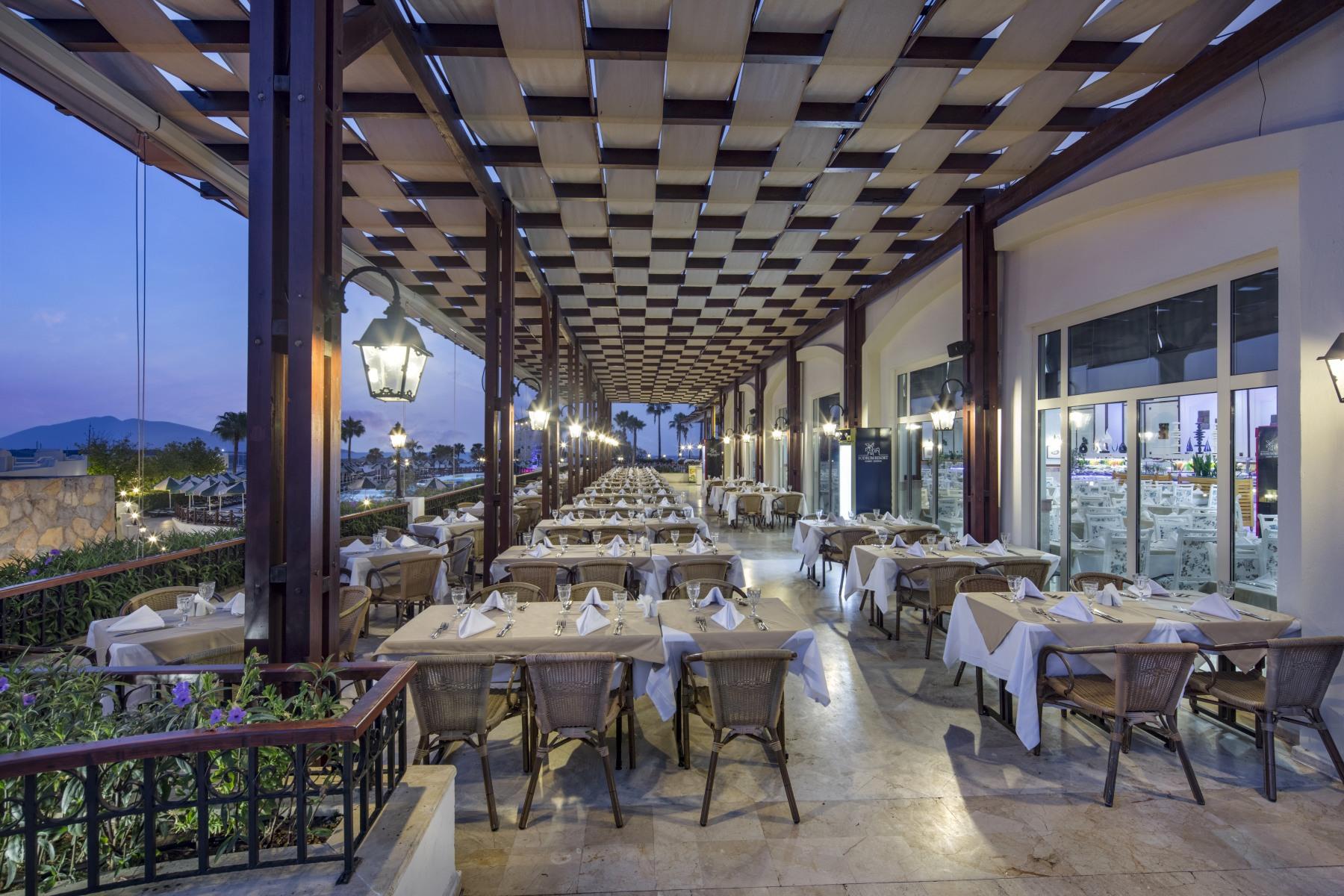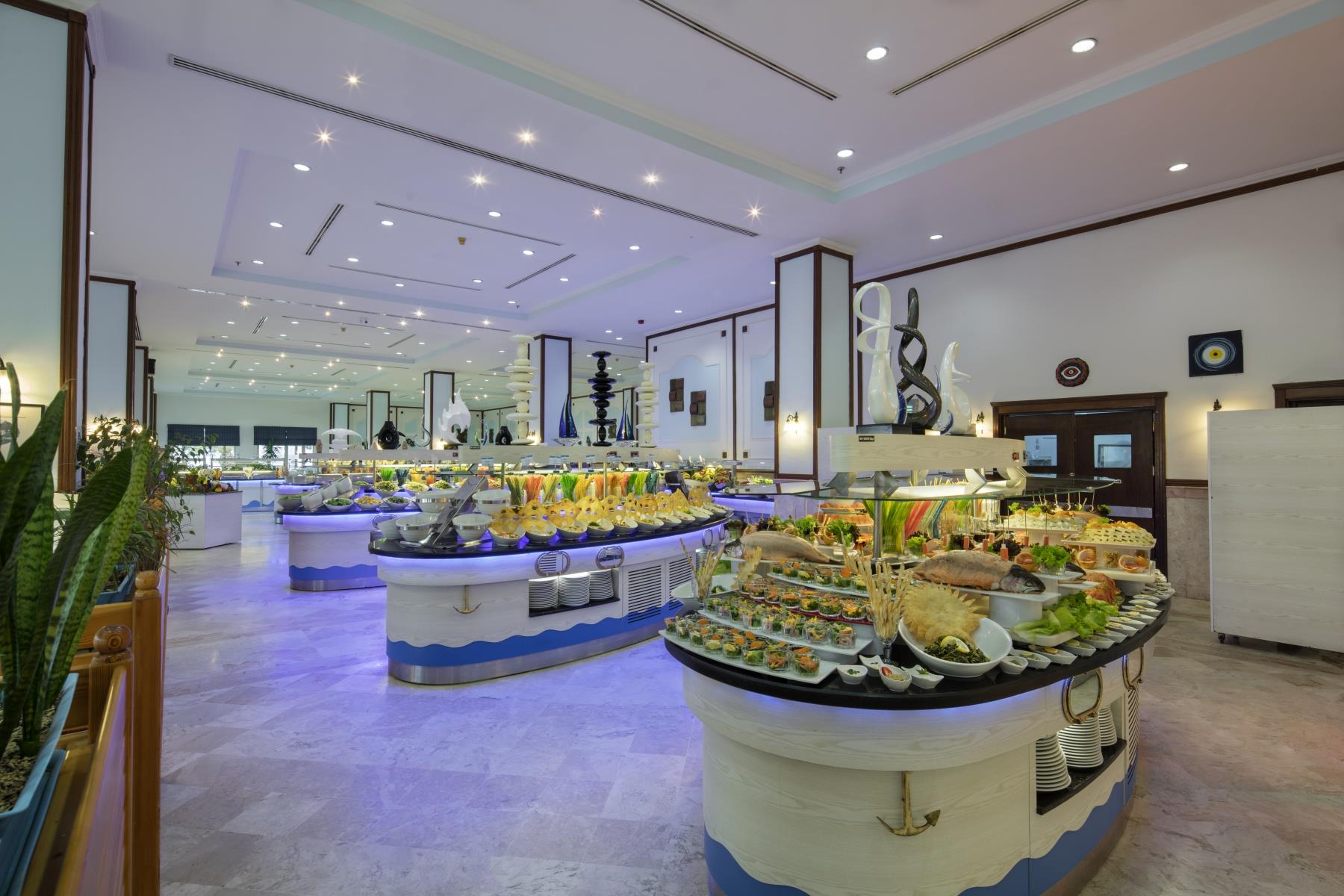 В ресторане Amadeus сервируют завтраки, обеды и ужины в формате “шведский стол”, для малышей есть отдельный детский стол. В Sini гостям предлагают отведать блюда турецкой кухни, в La Gondola – итальянской (режим работы: с 19:30 до 22:00). На территории комплекса работают бары, кондитерская и снэк-бар.