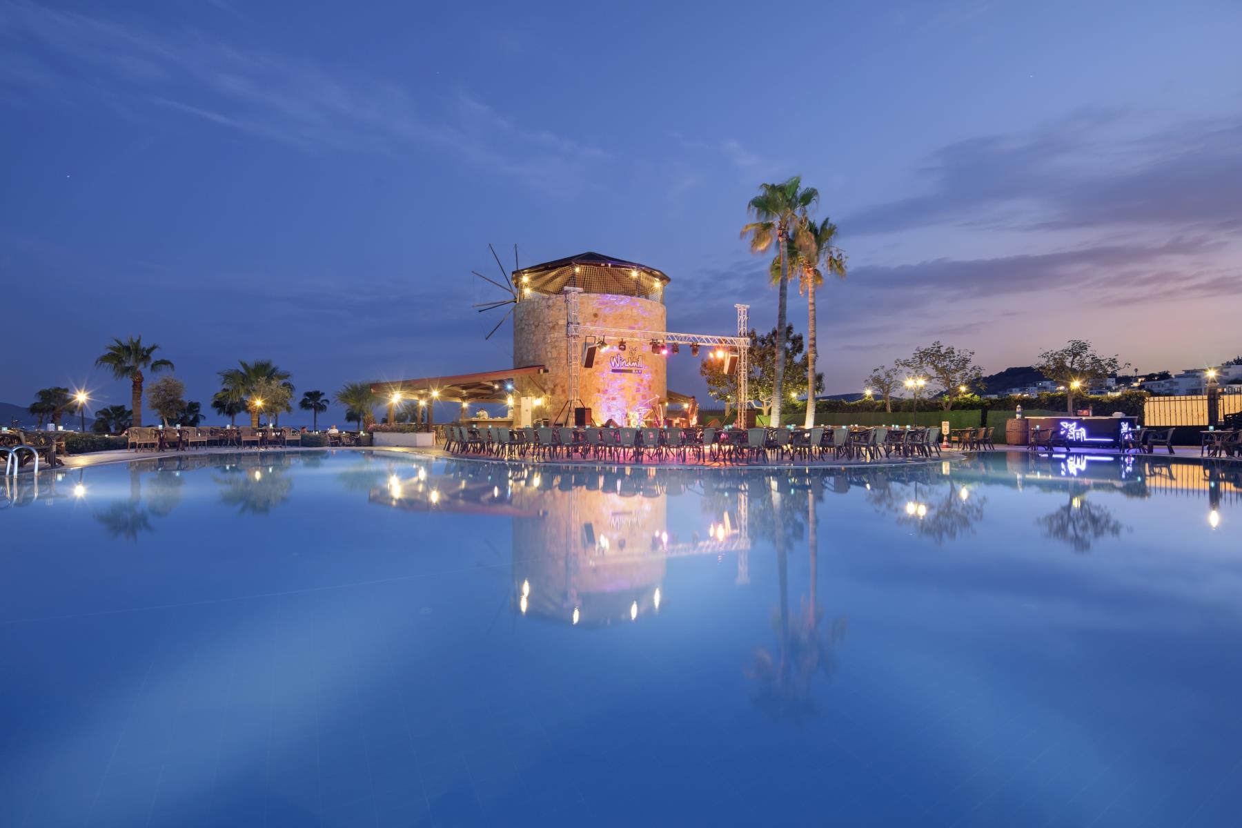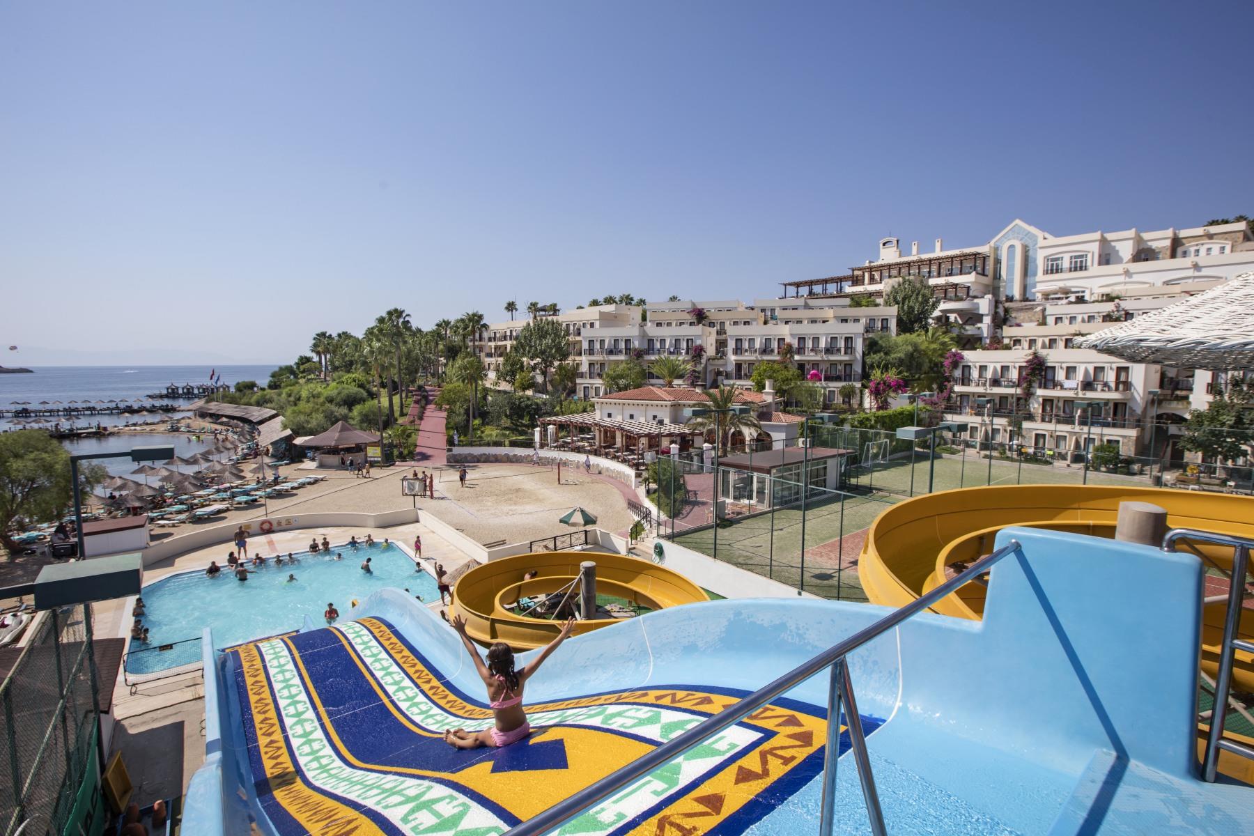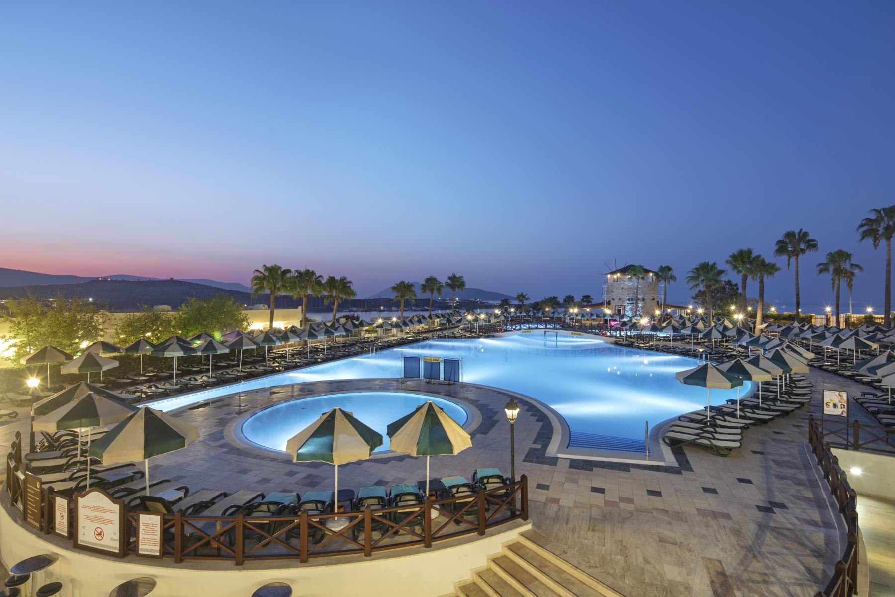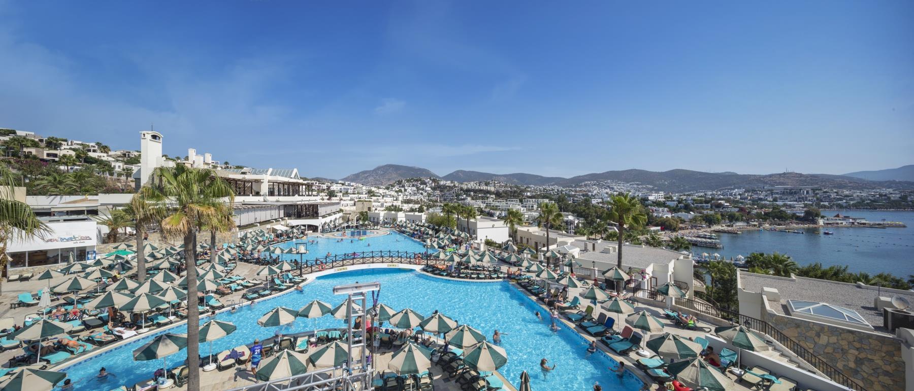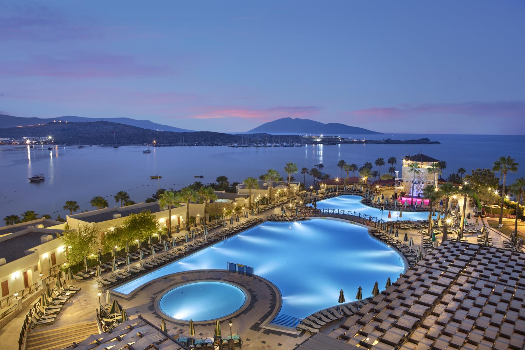 Комплекс Asteria Bodrum Resort расположен в поселке Гюмбет, в 4 км от центра Бодрума. Отель работает по системе Ultra All Inclusive.
