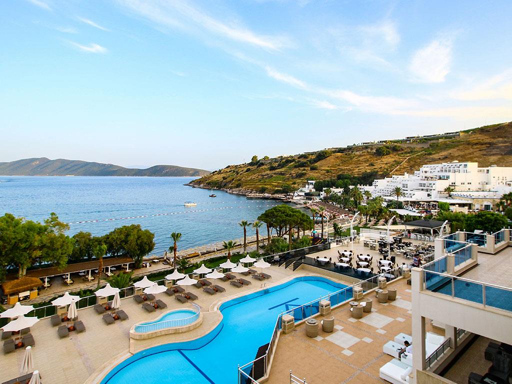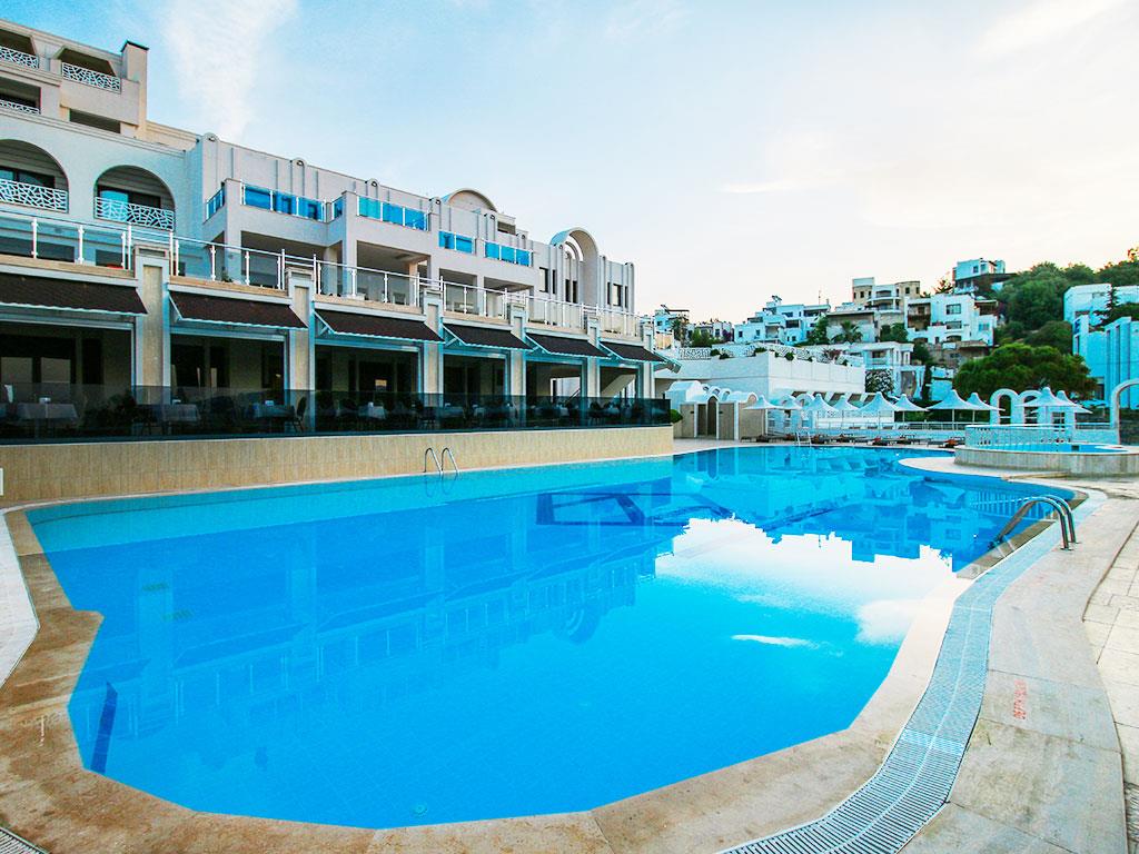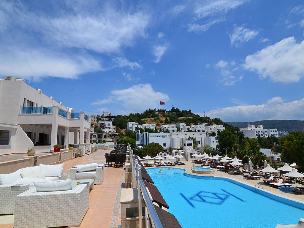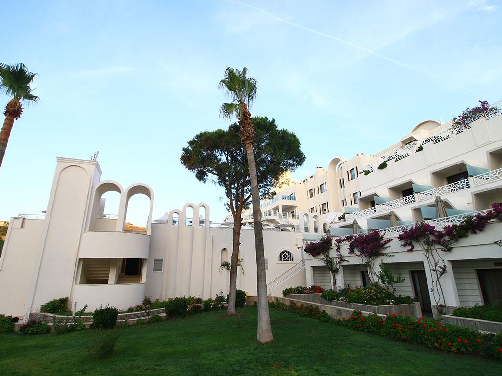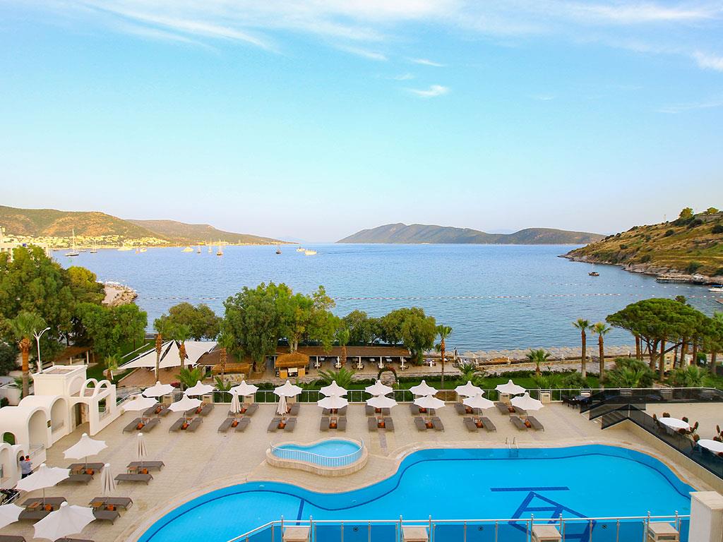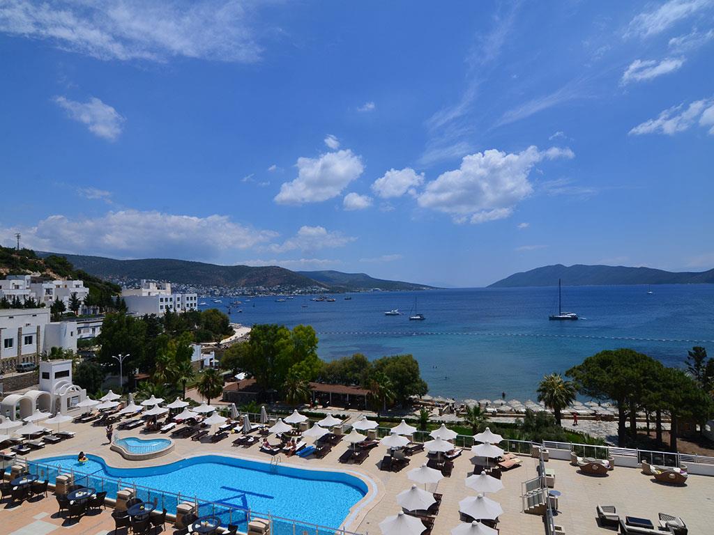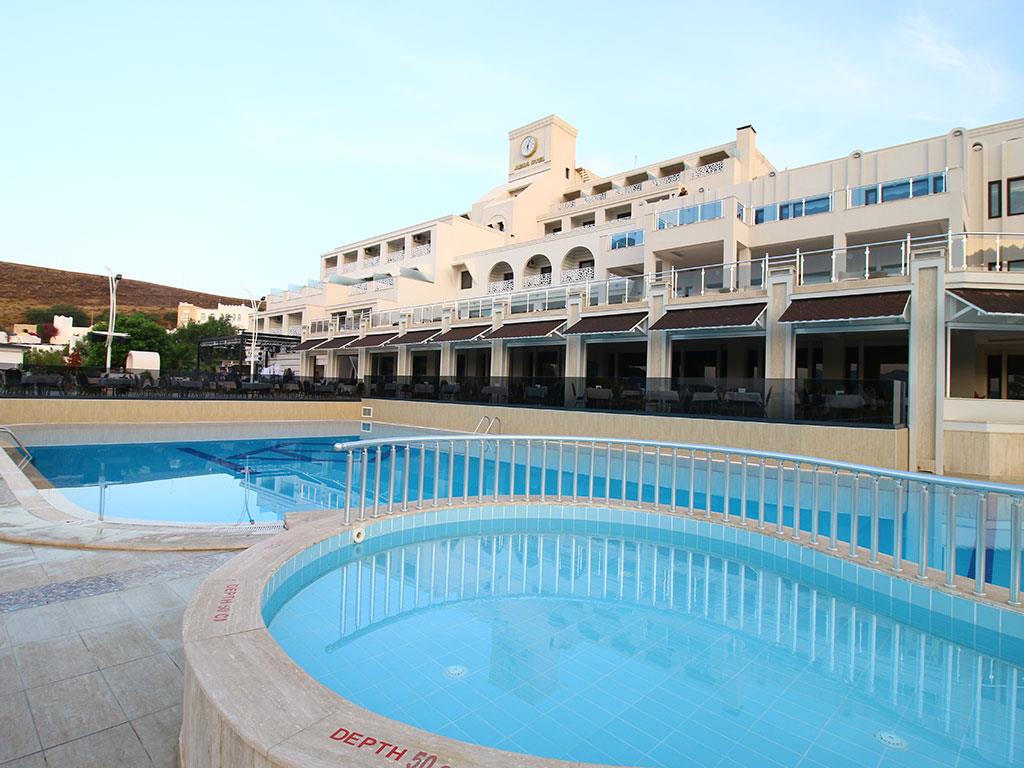 Отель Azka раскинулся на большой зеленой территории на самом берегу живописной бухты Бардакчи. Ближайший населенный пункт – курортный город Бодрум, расположенный в полутора километрах. До него легко дойти пешком, а можно с ветерком прокатиться на катере, из тех, что ходят регулярно в течение дня. До древней крепости, которая является главной достопримечательностью этих мест, всего сорок минут прогулки. Для комфортного передвижения по окрестностям удобно пользоваться сервисом проката велосипедов.