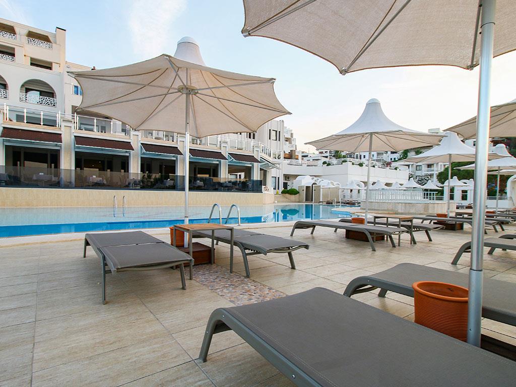 Отель Azka может похвастаться лучшим пляжем в Бардакчи. Он песчаный, шириной двести метров, и за уникальную чистоту удостоен голубого флага. На территории комплекса расположены открытые бассейны, которые тоже предназначены для комфортного принятия водных и солнечных процедур. В свободное время постояльцам доступны настольный теннис, сквош или баскетбол, а после насыщенного дня приятно расслабиться в турецкой бане или массажном салоне. Для юных гостей отеля работают мини-клуб и игровая площадка с горками и качелями, а также имеются два специальных бассейна.