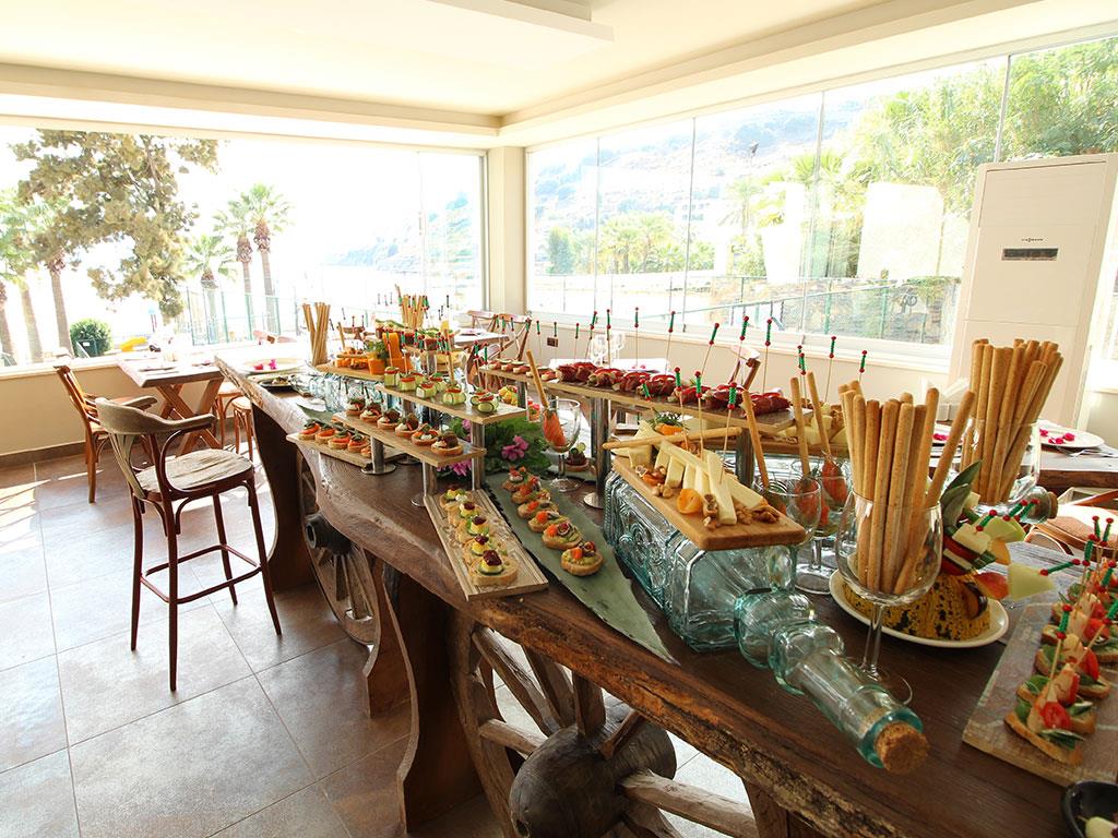 Отель работает по системе полупансион, что позволяет обедать каждый раз в новом месте, делая удивительные гастрономические открытия. Рекомендуется обратить внимание на пляжный бар или дойти до бухты Гюмбет, где множество кафе и ресторанов на любой вкус, дорога займет всего пятнадцать минут. За ужином в отеле все напитки предоставляются за отдельную плату.