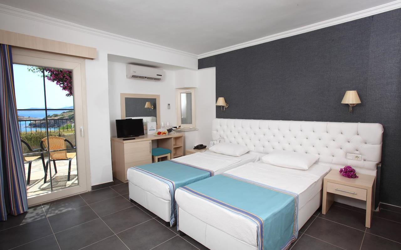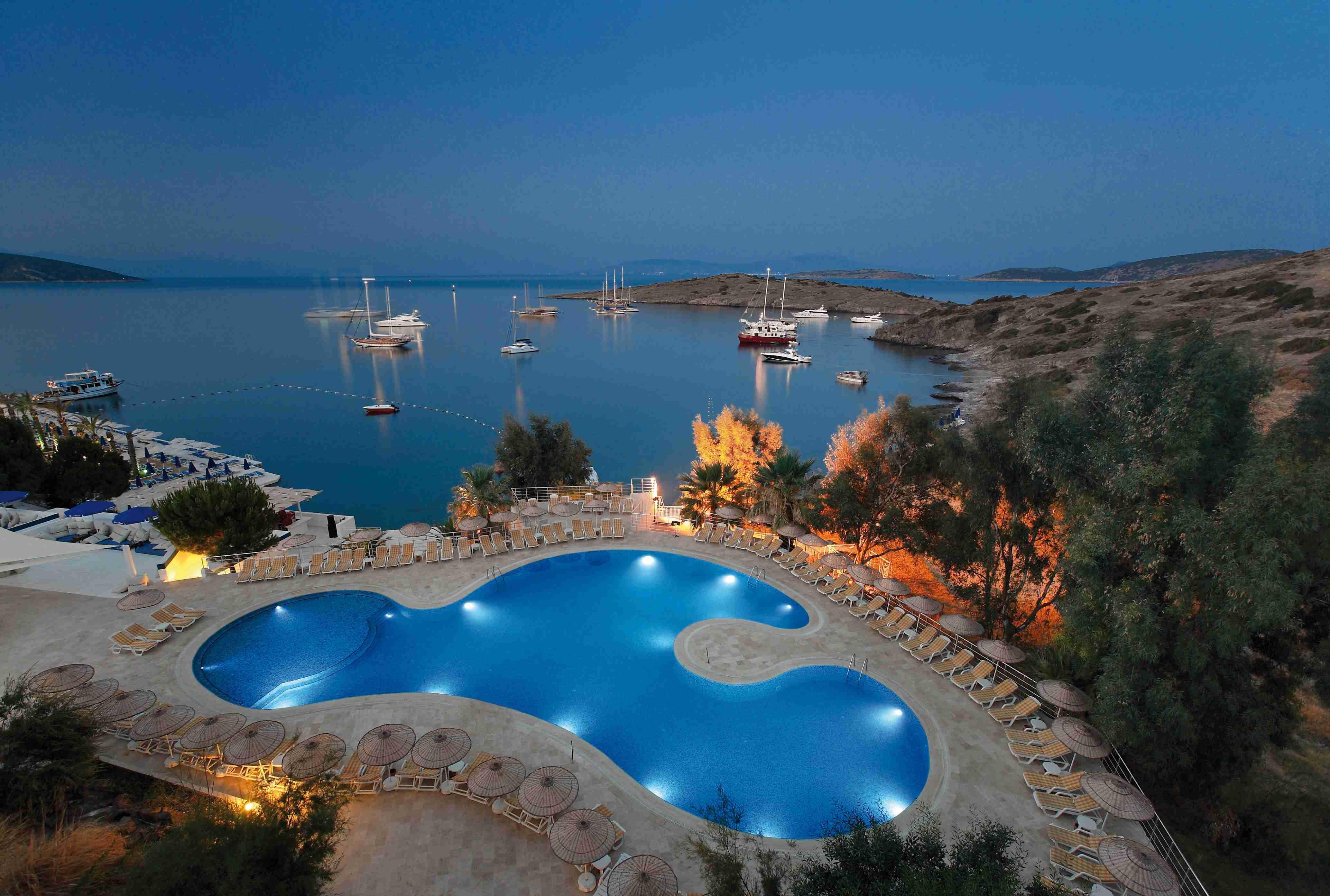 – Бодрум, находиться 5-звездочная гостиница «Bodrum Bay Resort». Здание расположено на небольшом полуострове, поэтому практически из всех окон открываются восхитительные виды на море. До ближайшего аэропорта расстояние составляет 32 км. Чтобы добраться до него отдыхающие могут заказать услугу трансфера или воспользоваться общественным транспортом.