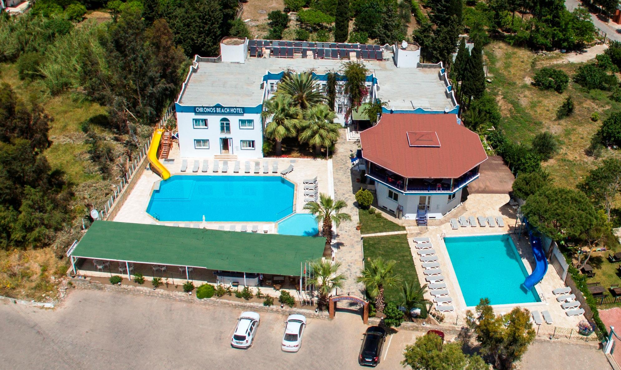 В нескольких минутах ходьбы от ближайшего галечного пляжа расположился 3-звездочный отель Chronos Beach Hotel Bitez. В распоряжении гостей – 3 бассейна, один из которых детский. Также юных гостей ждут водные горки и красочная игровая площадка. Часть ресторана находится на улице, где плетенная мебель идеально сочетается с аккуратно подстриженным газоном.