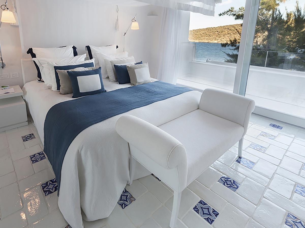 Deluxe room (46-47 кв. м): терраса (6 или 16 кв. м), спальня с двуспальной кроватью, ванная комната с джакузи или душевой кабиной.