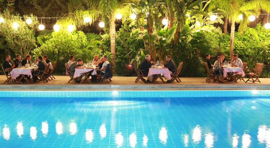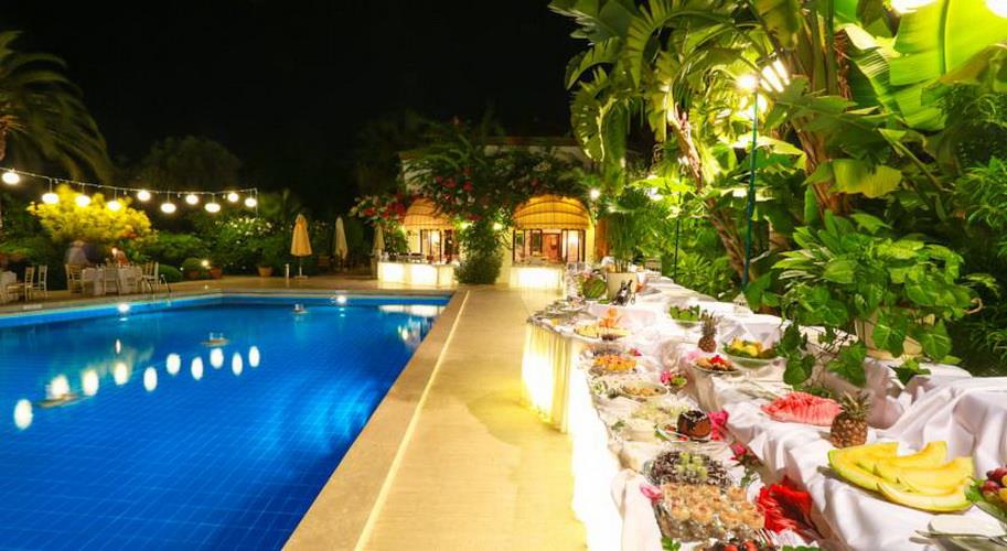 Питание: полупансион - шведский стол. Наслаждайтесь приглушенным светом свечей в уютном окружении благоухающего жасмина или приятно проводите время в элегантной атмосфере нашего высококлассного ресторана «Сера». Шеф-повара используют только самые свежие продукты, которые привозят с местных рынков, чтобы приготовить вам обильный завтрак и закуски для обеда. Они гордятся, что могут предложить гостям восхитительный набор Турецких и международных деликатесов.Вы будете удивлены изобилию спелых фруктов и овощей, которые идеально подходят для гостей придерживающихся вегетарианской диеты.Есть и специальные предложения. Полдник обычно сервируют порционными блюдами “a la carte”, бар при бассейне принимает небольшие заказы и гриль, а также есть круглосуточный сервис для таких пожеланий как завтраки в постель или ночные закуски.