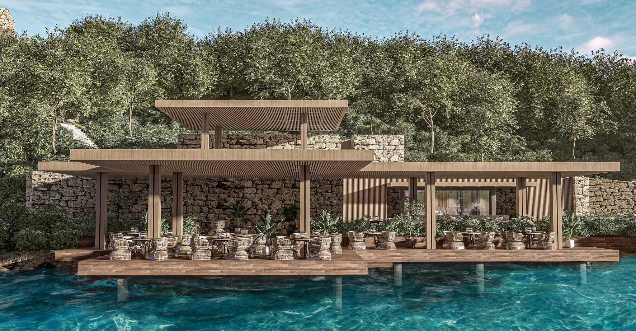 На территории работает основной ресторан, рестораны с обслуживанием по меню Twenty, рыбный ресторан, Caviar Kaspia, Oro & Vermu By Alfredo Russo, ресторан Maxx Wellbeing, Beach Restaurant, бары, пляжный бар, лаунж бар, лавка с мороженым, кондитерская.