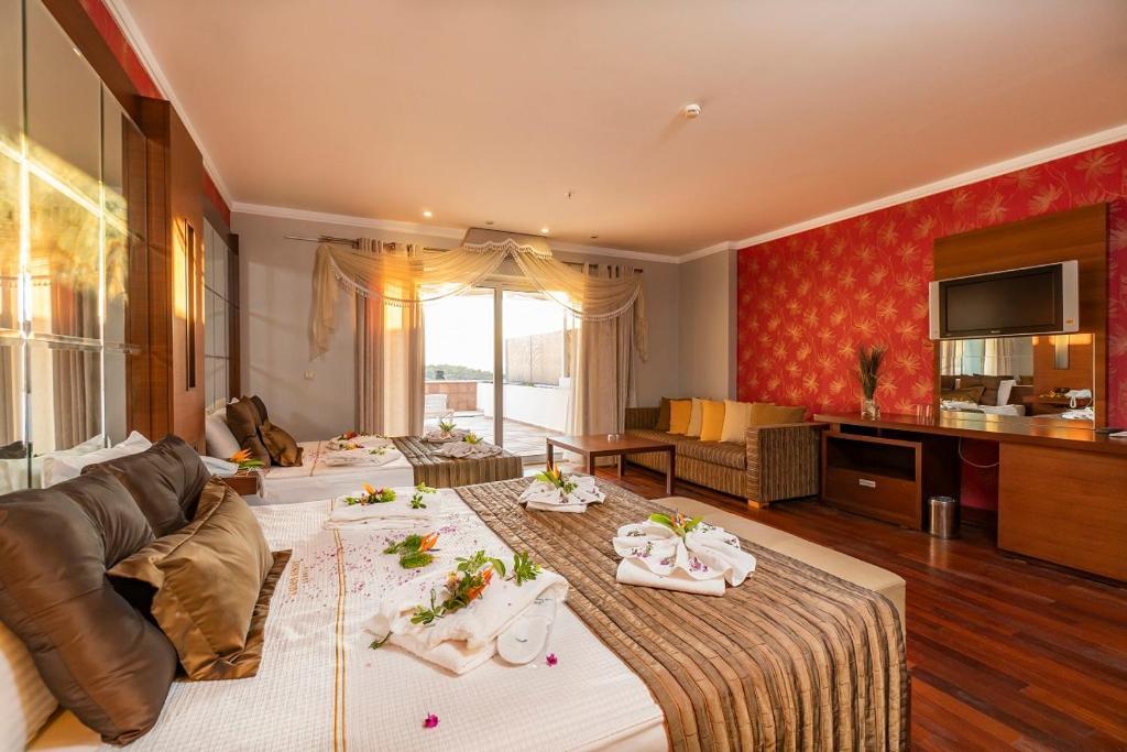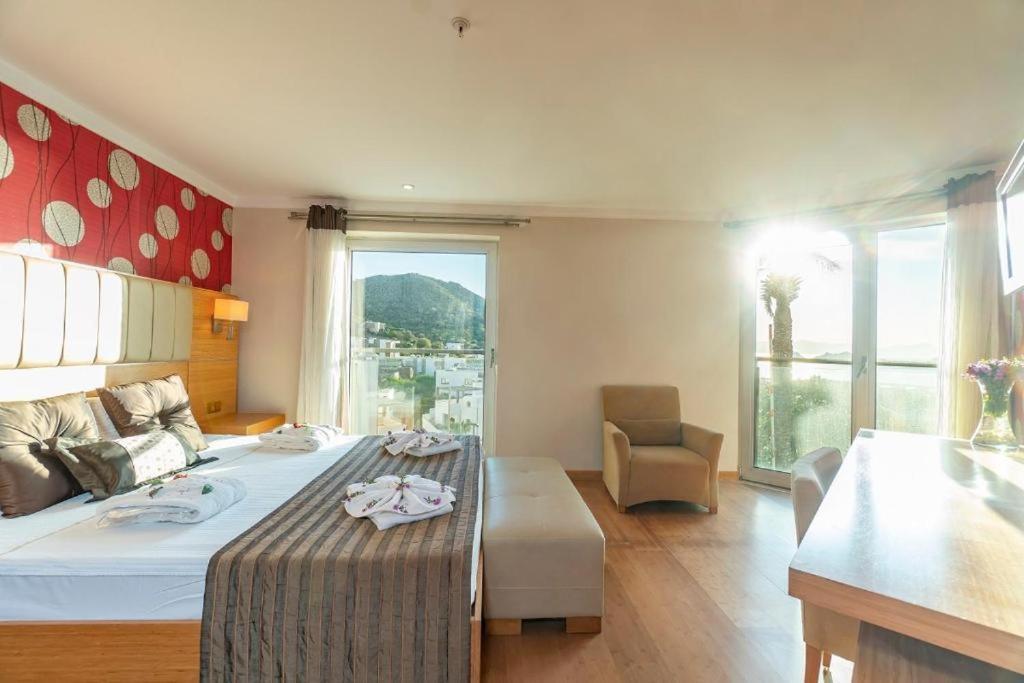 Отель My Mira Deluxe Resort расположен в 55 км от аэропорта Милас-Бодрум, в регионе Тургутрейс.