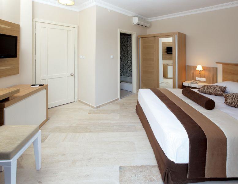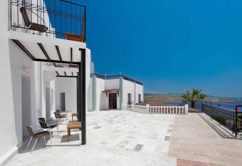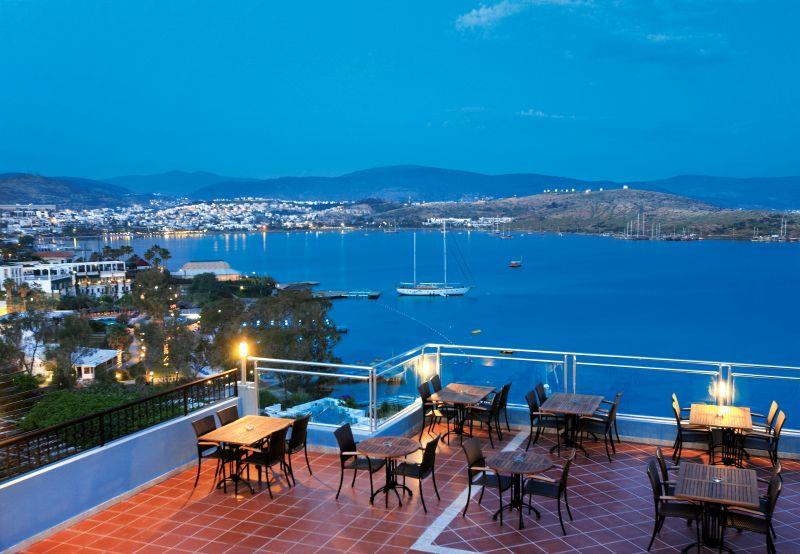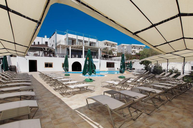 Расположен в 40 км от аэропорта Бодрума, в 5 км от Бодрума, в поселке Гумбет, в 50 м от пляжа