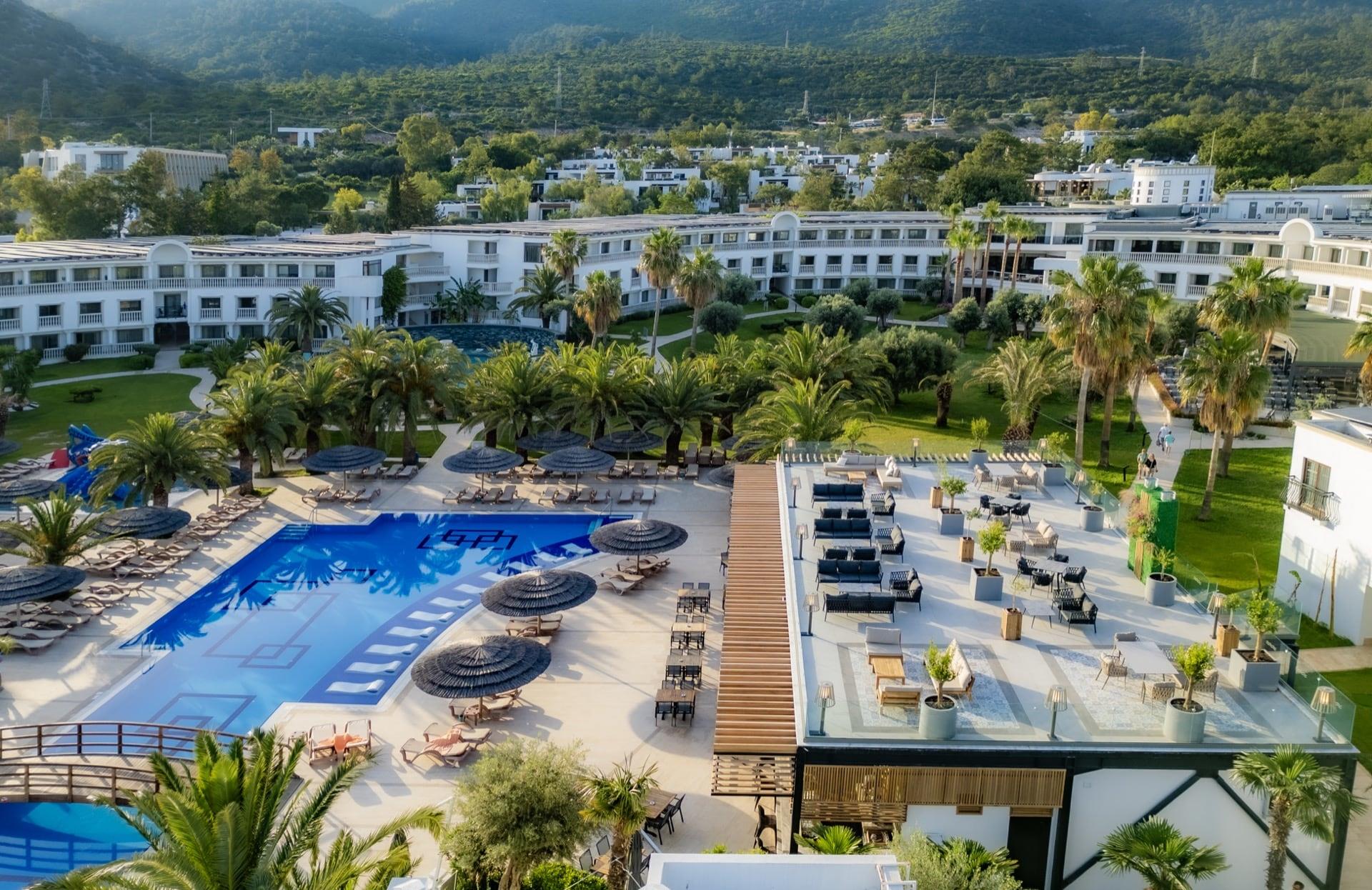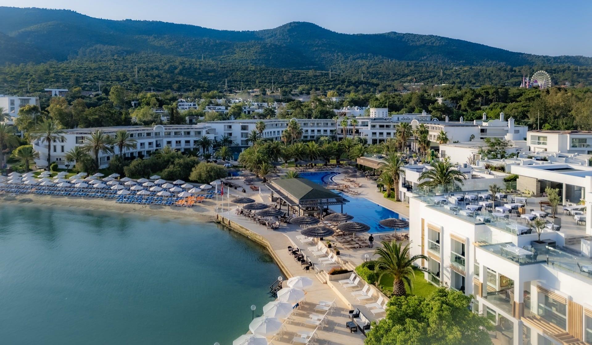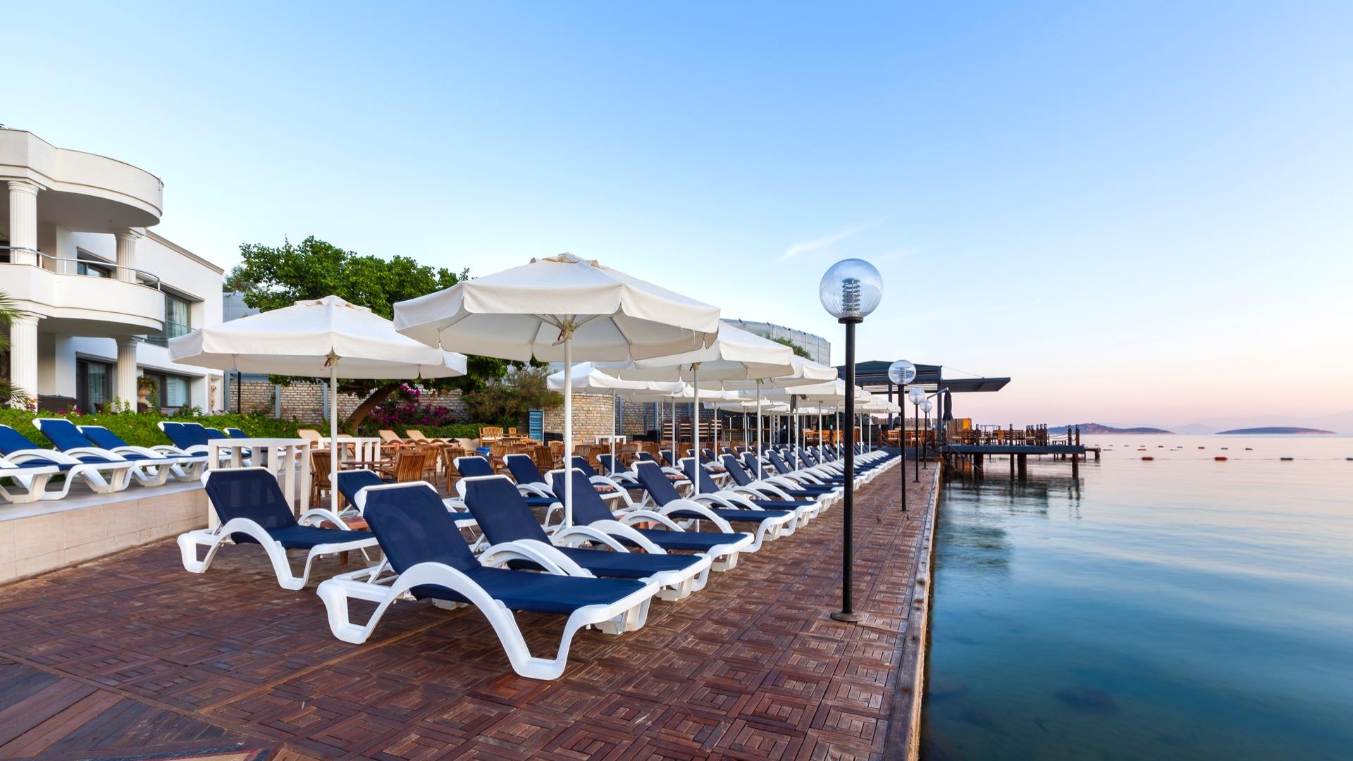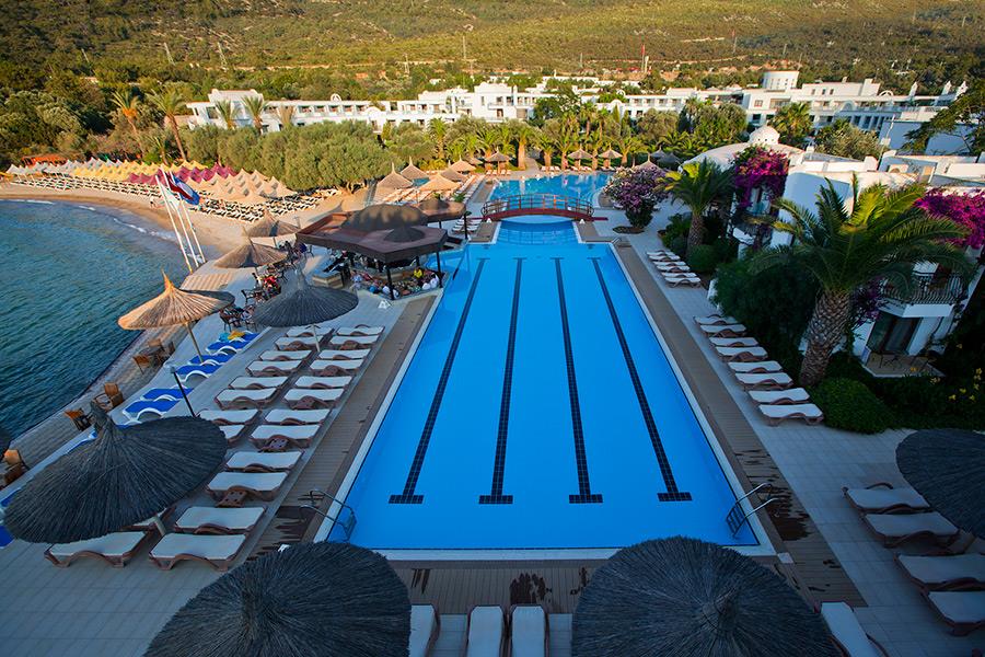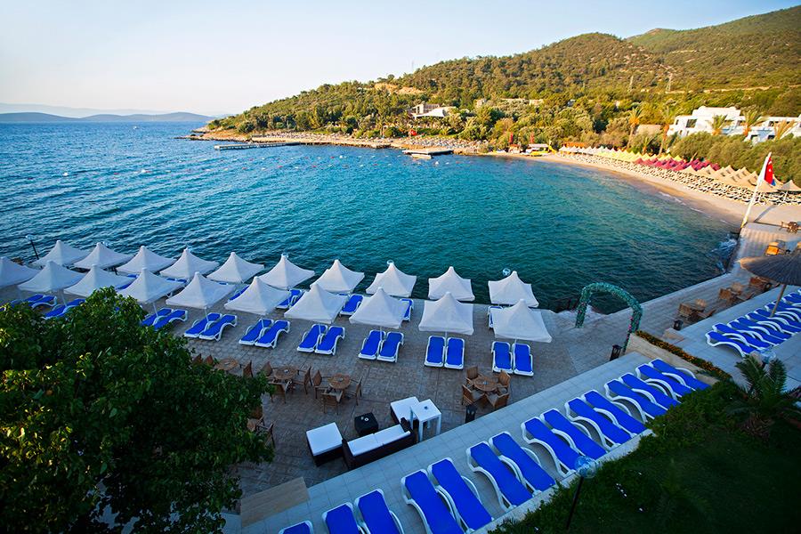 Расположение: расположен в 27 км от аэропорта г. Бодрум, в 5 км от пос. Торба, в 8 км от г. Бодрум, на самом берегу моря