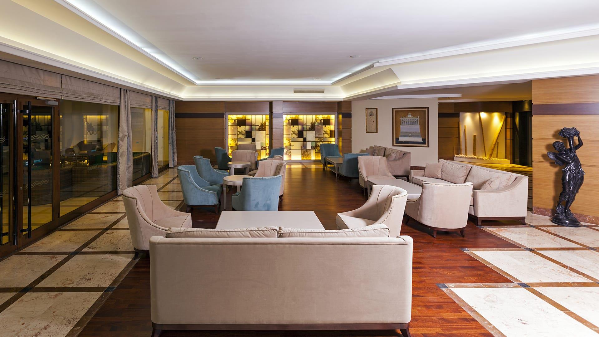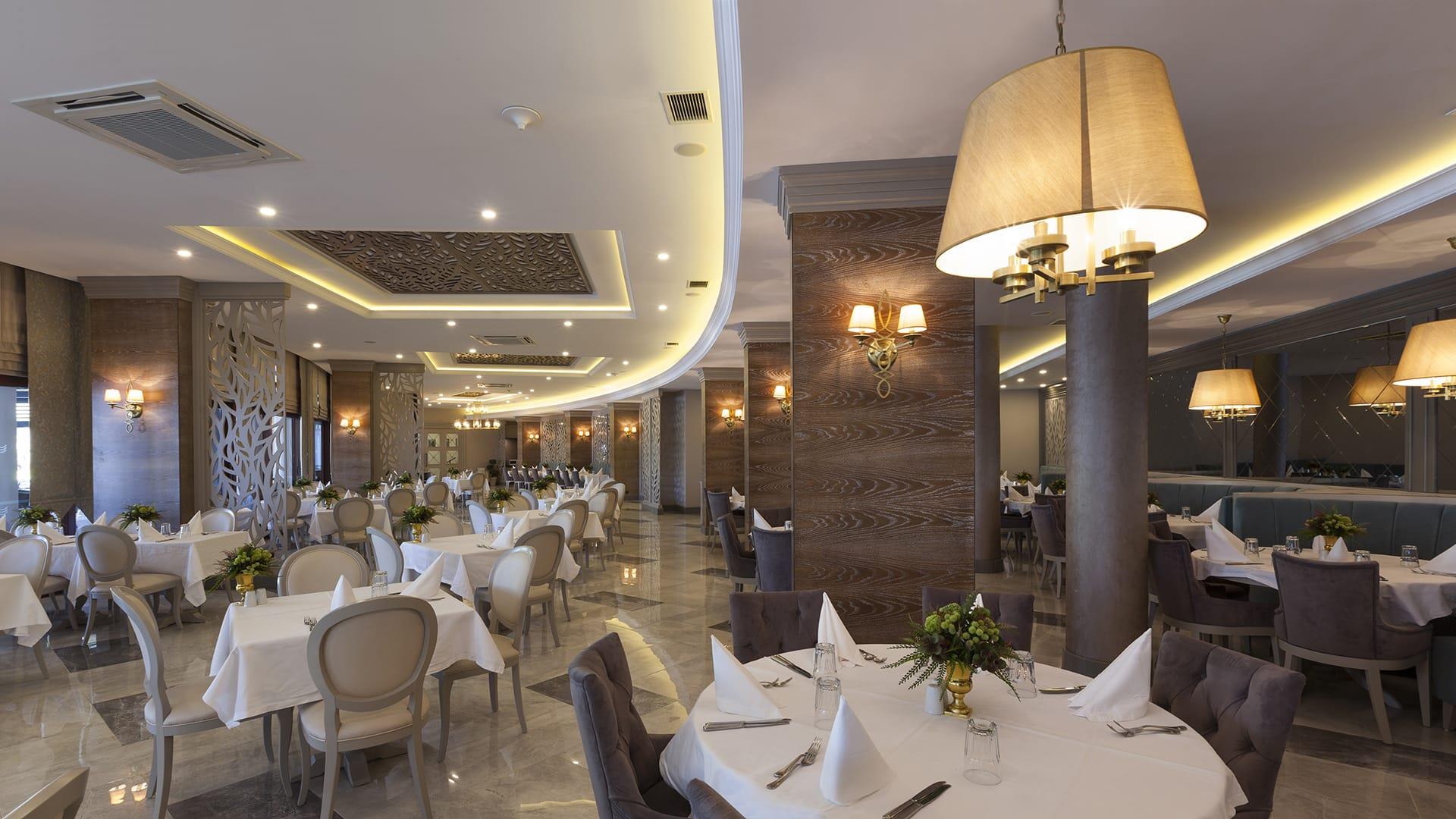 основной ресторан, ресторан A la carte (по предварительной записи), 6 баров (Lobby-Bar, Sea-Bar, Pool-Bar и др.), 2 открытых бассейна, закрытый бассейн, врач по вызову, парикмахерская, прачечная, 6 конференц-залов (макс 400 чел), салон красоты, торговый ряд, обмен валюты, прокат автомобилей, парковка.