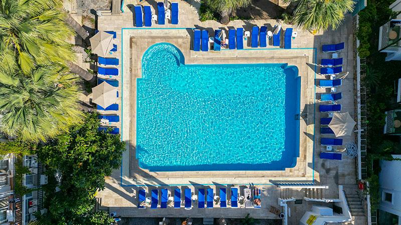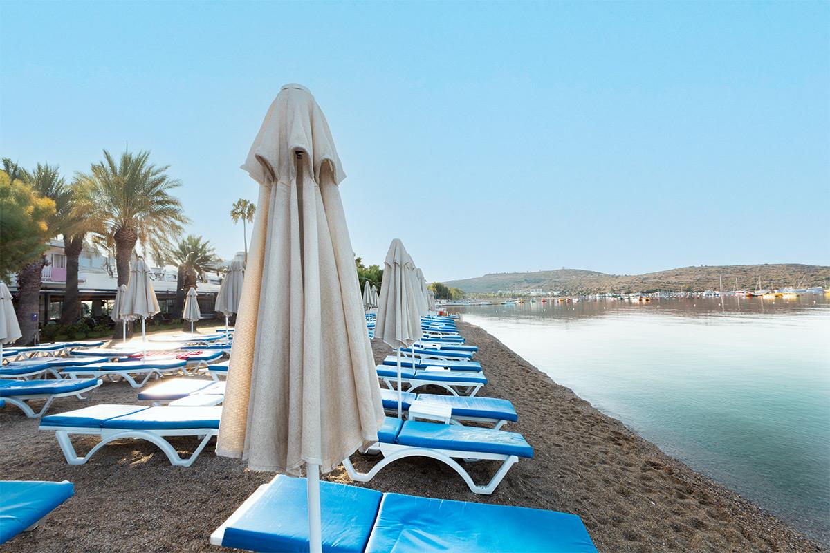 Расположен : в бухте Гюмбет (одном из самых "тусовочных" мест Бодрума), на уровне моря, на первой линии, 3 км от Бодрума, 35 км от аэропорта.