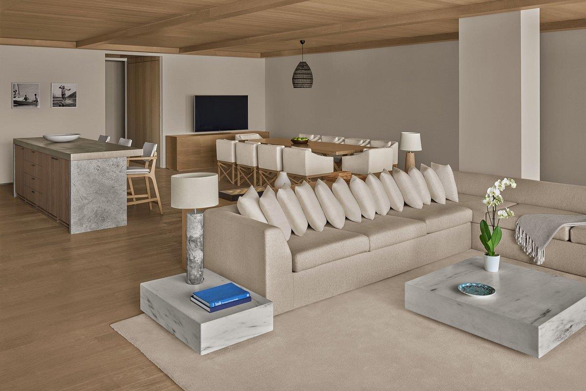 Для размещения предлагаются стильные номера и виллы, большинство из которых с видом на Эгейское море. Все они оснащены интернетом, сплит-системой, сейфом, мини-баром, телефоном, террасой, телевизором, феном, холодильником. Также действует круглосуточная услуга рум-сервис. Возможно поселение с домашними питомцами. А по запросу предоставляется детская кроватка.