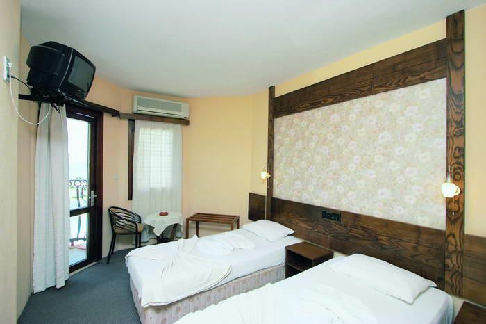 Отель представляет собой трехэтажное здание и предлагает к размещению всего пятьдесят номеров. Среди них есть как стандартные комнаты, так и двухуровневые семейные апартаменты с двумя спальнями и просторным холлом. Все номера оборудованы кондиционерами, телефонами и телевизорами с российским каналом. Имеются балконы с видом на море или город.