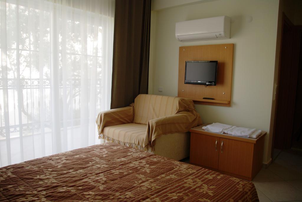 В простых номерах отеля есть все необходимое для комфортного отдыха: кондиционер, ванная комната с феном, телефон и балкон.