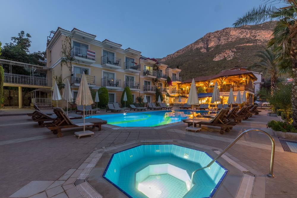 Отель расположен в поселке Олюдениз, в 15 км от города Фитхие и занимает площадь 1200 кв.м.