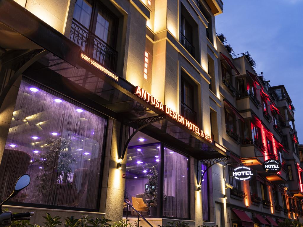 Antusa Design Hotel & Spa расположен в туристическом центре Стамбула, в районе Султанахмет. Состоит из одного 4-этажного здания.