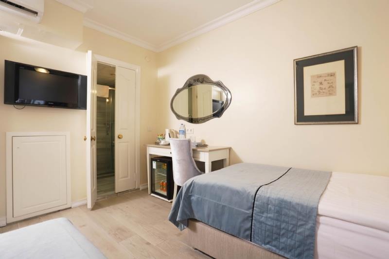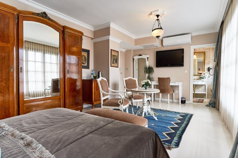– это отель класса 4*, расположенный в отреставрированном в 1996 году в старом доме. Гостиница находится в самом центре Стамбула в окружении главных достопримечательностей города. Из окон и террасы отеля открывается прекрасный вид на город и пролив Босфор. Высокий уровень обслуживания, уют и комфорт номеров позволяют насладиться незабываемым отдыхом в самом красивом городе Турции. Расположение: Отель расположен в центральном районе Стамбула, в 18 км от аэропорта Ataturk. В номере: