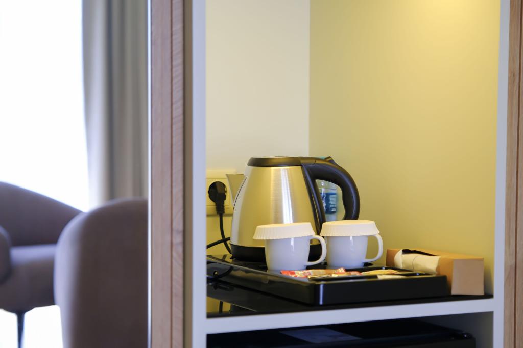 Номер уютно обставлен и оснащён необходимым, чтобы отдохнуть после долгого и насыщенного дня. Имеются телевизор, мини-бар и халат. Оснащение зависит от выбранной категории номера.