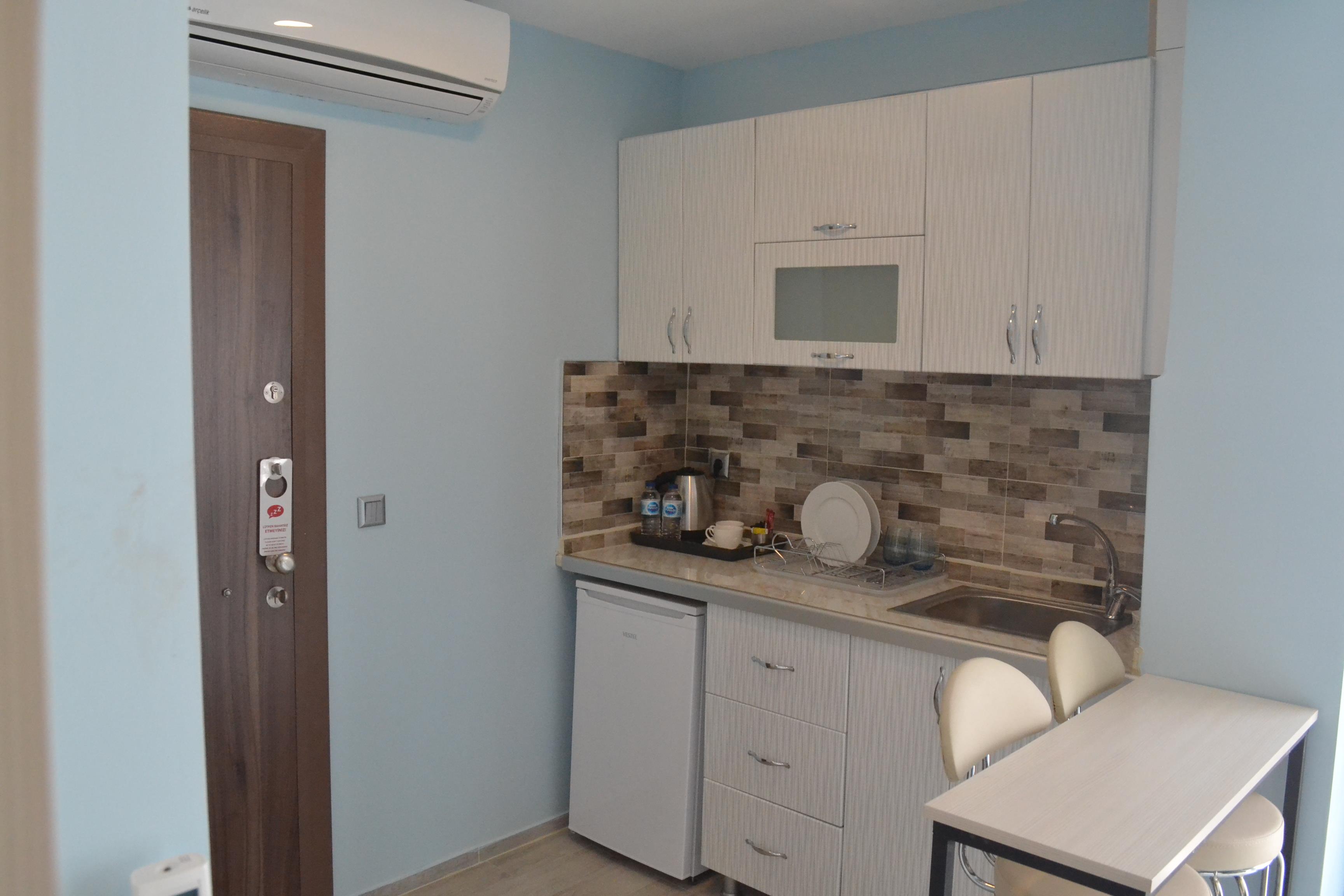 Superior Room с большой двуспальной кроватью, индивидуальной ванной комнатой и кухней, телевизором, телефоном, сейфом, кондиционером. Площадью 16 кв. м., максимальное размещение 2 человека.