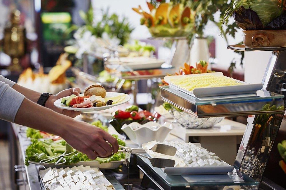 На территории сервируется завтрак в формате шведский стол.