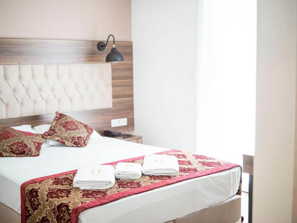Double Room площадью 20 кв.м., максимальное размещение – 2 взрослых + 1 ребенок. 1 двуспальная или 2 односпальные кровати. В номере есть ванная комната с туалетными принадлежностями, телевизор, мини-бар, кондиционер, фен, тапочки. Вид на город, за дополнительную оплату – на море.