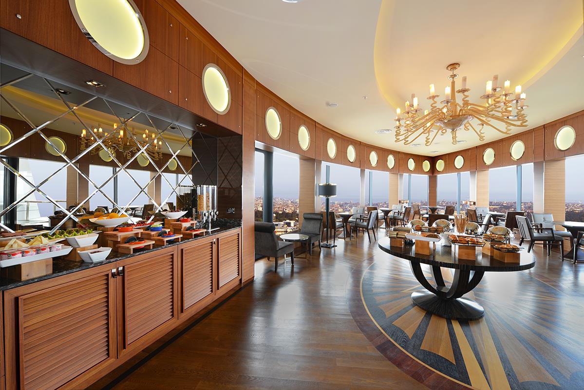 В ресторане Alesta накрывают завтрак шведский стол с большим выбором горячих и холодных блюд, чаем и свежесваренным кофе. В ресторане Hasır Turkish Cuisine на 18 этаже подают традиционные блюда региона Анатолия. Из обеденного зала открывается панорамный вид на городской пейзаж. В кафе Titanic Coffee, открытом в течение всего дня, можно заказать напитки, легкие блюда и послеобеденный чай.