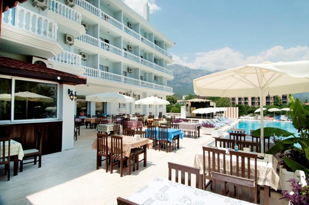Отель работает по системе все включено, которая действует с десяти утра и до десяти часов вечера. Отдыхающим предлагается отведать блюда со шведского стола. Ресторан радует посетителей как национальной и интернациональной кухнями. Гости отеля остаются довольными и сытыми, так как каждый день появляются новые вкуснейшие блюда из мяса, рыбы и овощей. А вот за свежевыжатый сок, турецкий кофе и кальян приходится заплатить дополнительно.