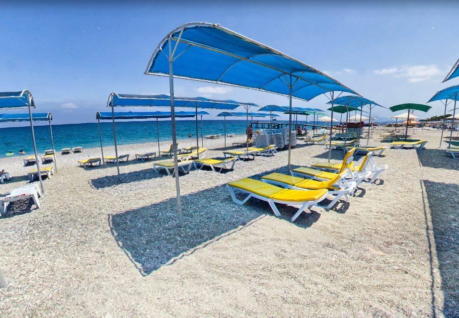 Пляжные полотенца – платно; шезлонги, матрасы и зонтики – бесплатно.