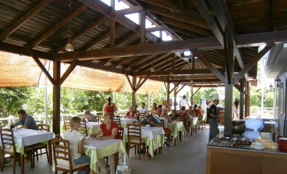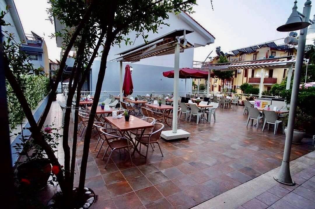 Территория отеля небольшая, но хорошо распланированная. На ней разместился открытый бассейн с детским отделением, окруженный шезлонгами и зонтиками для комфортного принятия солнечных ванн. Туристов всегда рады видеть в традиционной турецкой бане хаммам, где предлагают процедуры пилинга и пенного массажа. Ресторан отеля располагает просторной открытой террасой: трапезой здесь наслаждаются, созерцая живописные окрестности.