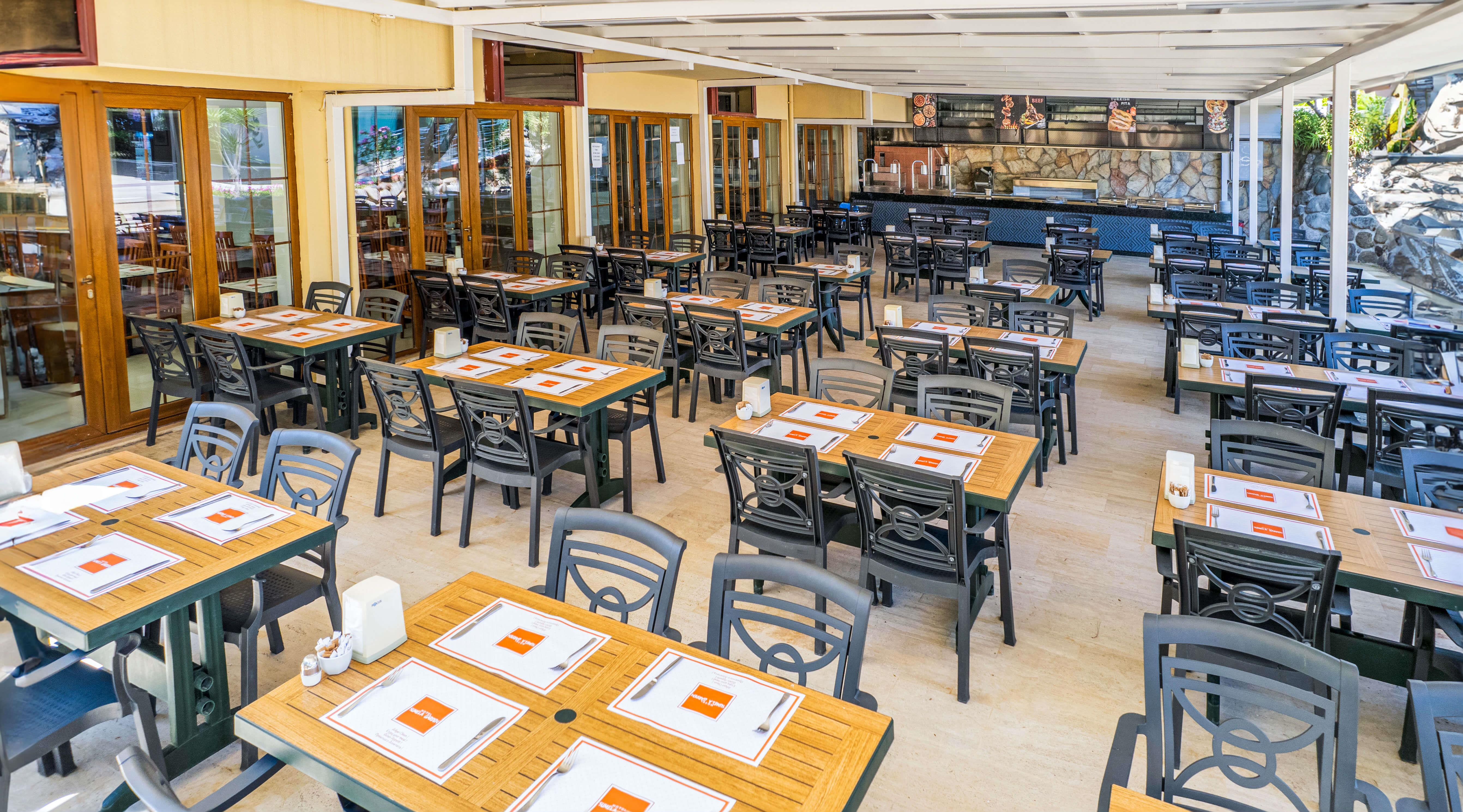 На территории отеля расположены взрослый и детский бассейны, есть терраса с шезлонгами и зонтами.