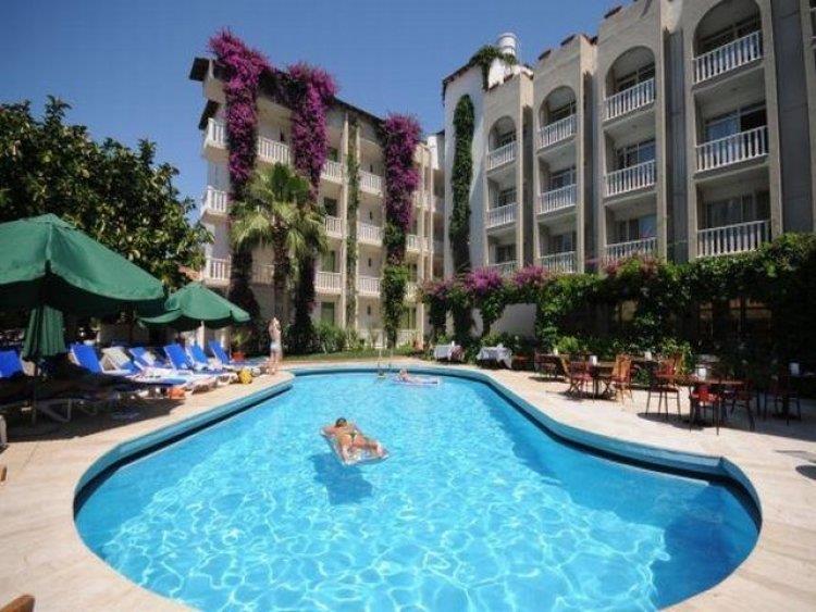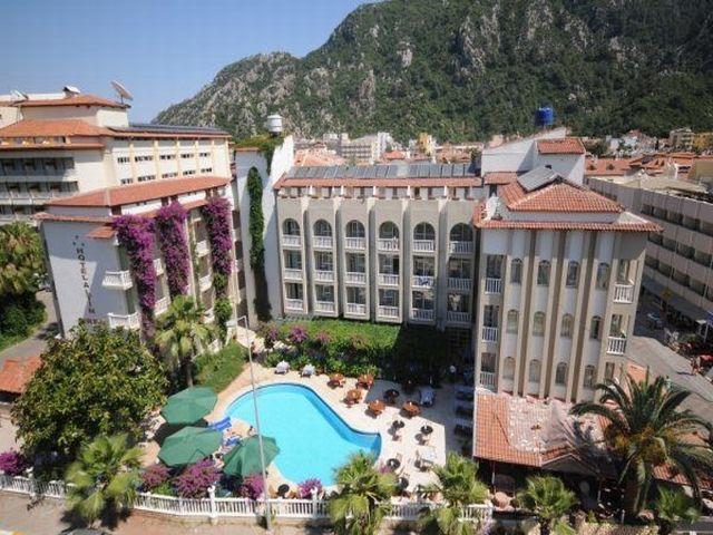 В поселке Ичмелер, известном своими великолепными песчаными пляжами, неоднократно отмеченными почетным Голубым Флагом, в восьми километрах от Мармариса, на площади в две тысячи квадратных метров, расположен небольшой четырехэтажный отель Altin Orfe.