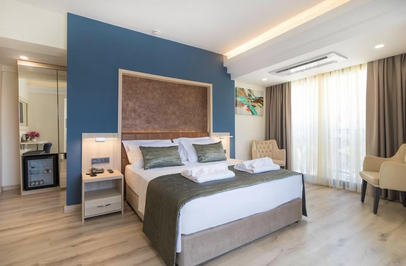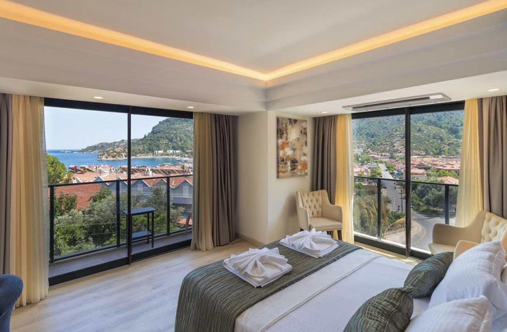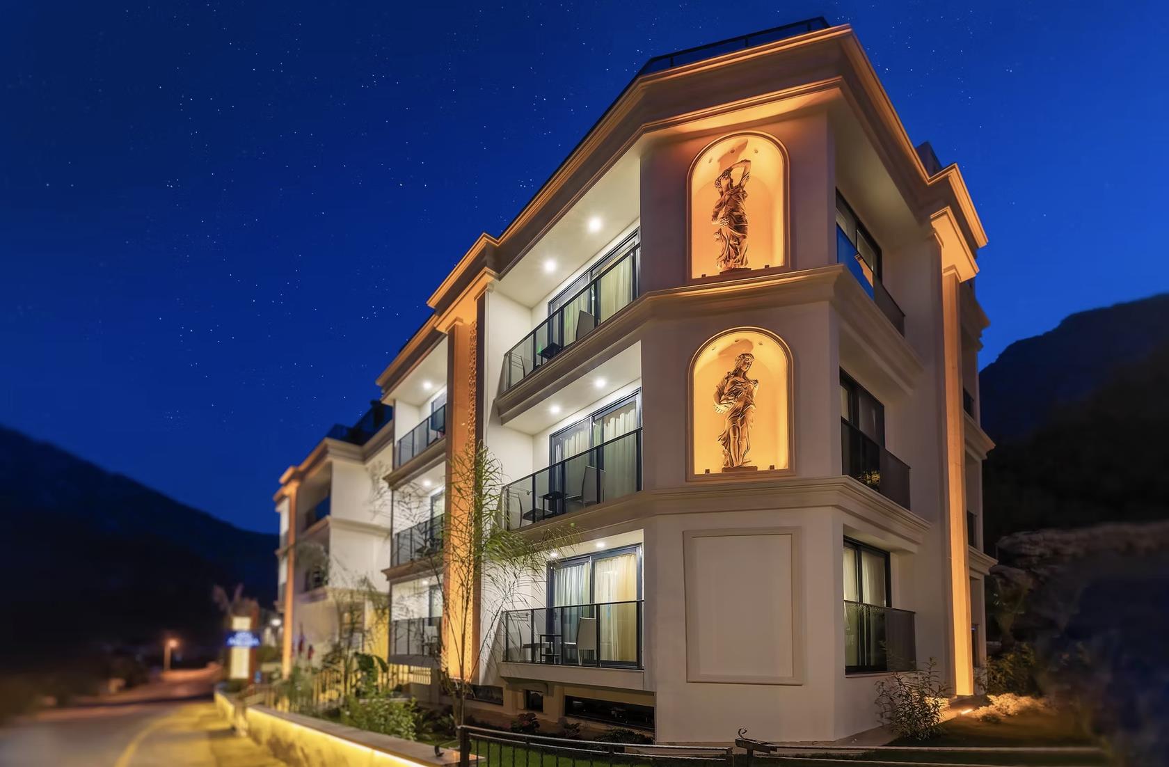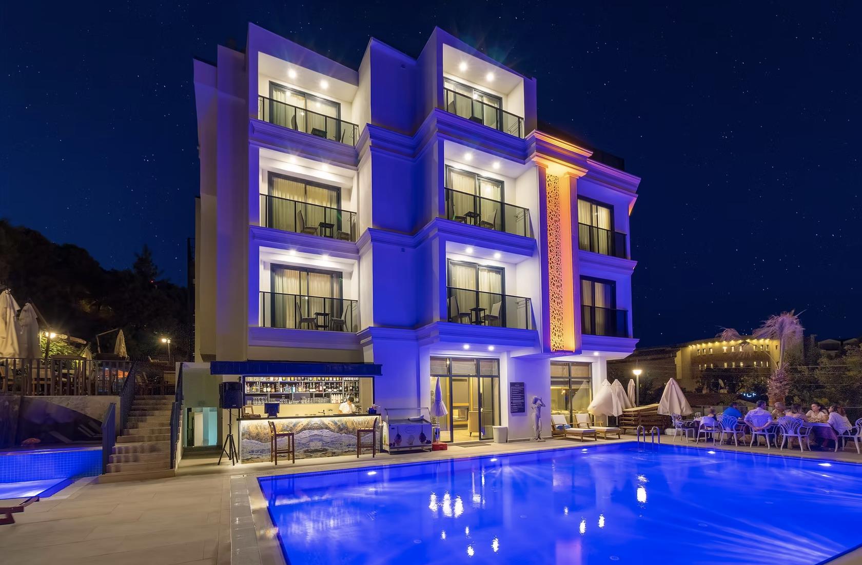 Отель Amossia Elite Hotel расположен в 116 км от аэропорта Даламан, в поселке Турунч.
