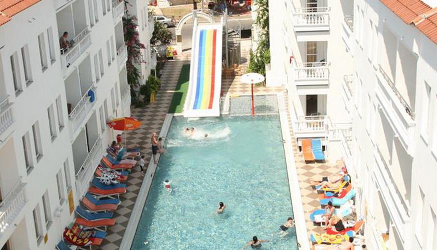 К услугам гостей апартаменты с меблированными балконами, детский клуб и открытый бассейн с несколькими горками.