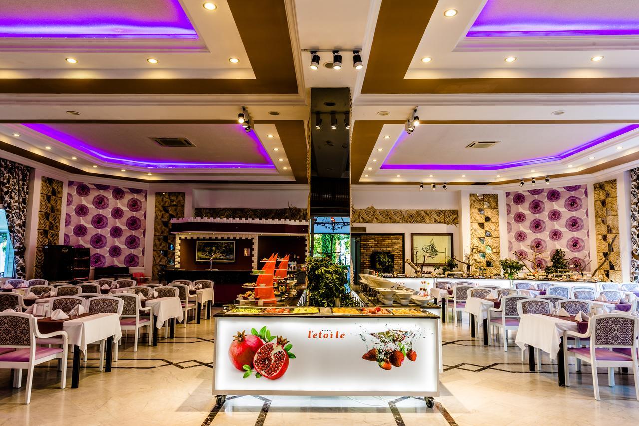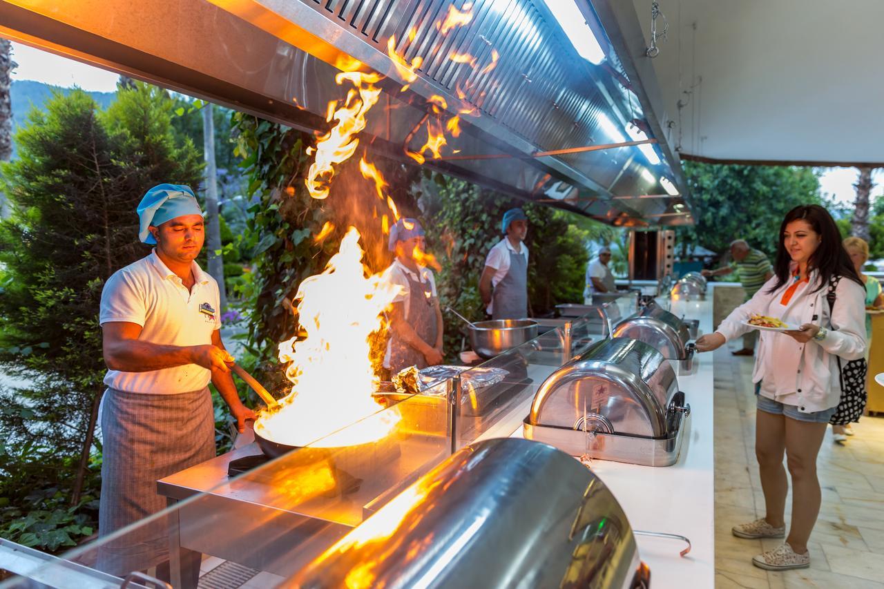 Питание осуществляется в главном ресторане отеля по системе «шведский стол». В меню – традиционные блюда турецкой и международной кухни.