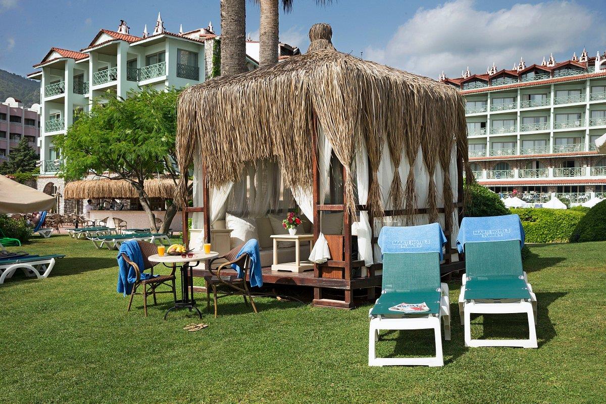 Отель "Marti La Perla 4*" находится в курортном городе Мармарис, Турция, на побережье Эгейского моря. Расстояние от аэропорта до гостиницы составляет 110 км, поэтому гости могут добраться до апартаментов на машине чуть более чем за час.