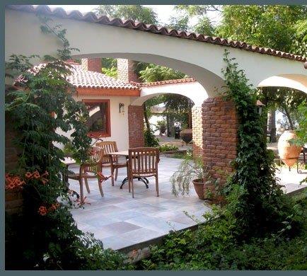 Территория отеля небольшая и ухоженная. Скошенные газоны и цветущие клумбы соседствуют с многолетними деревьями и кустарником, не знающим что такое стрижка, а небольшое, но красочное маковое поле привычно приводит в восторг неравнодушных к природным красотам постояльцев.