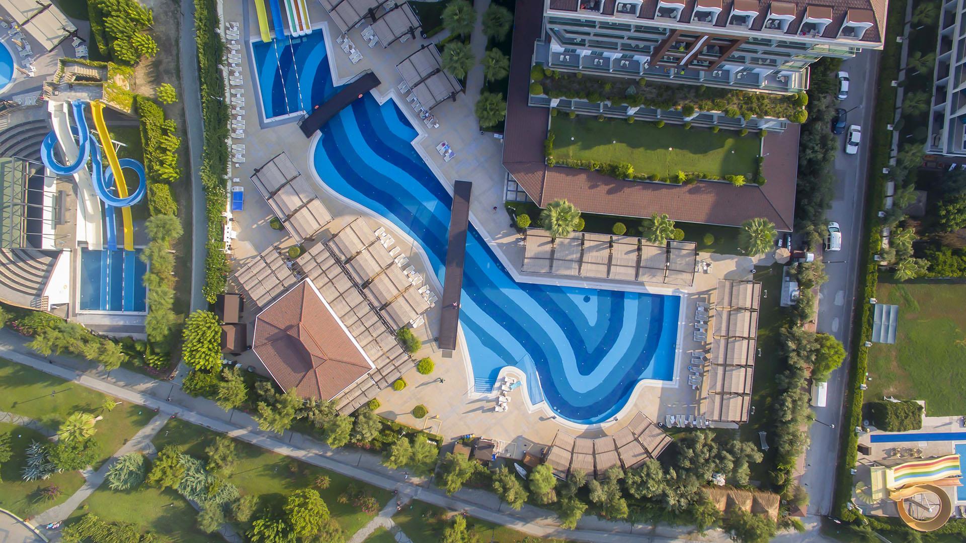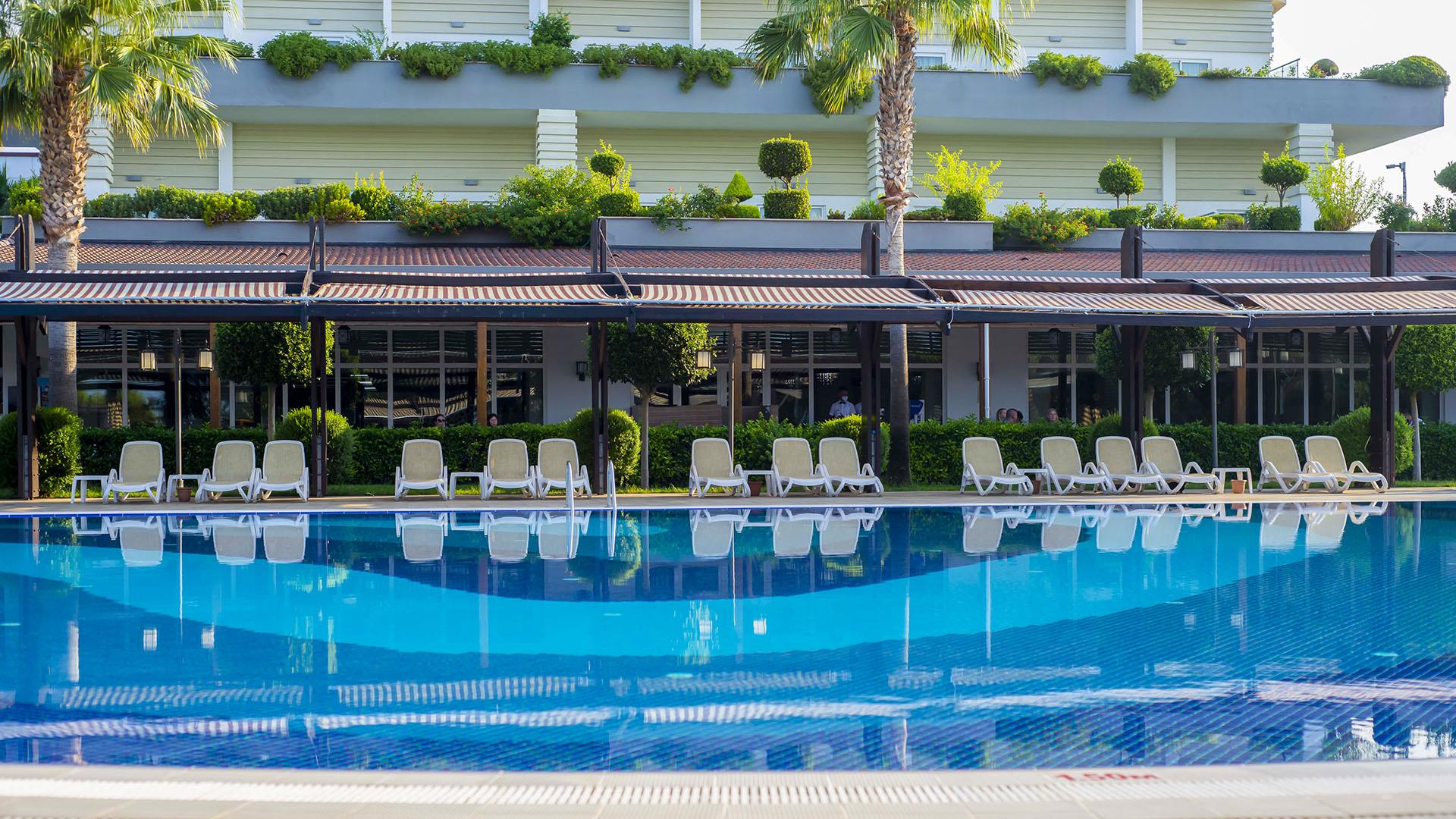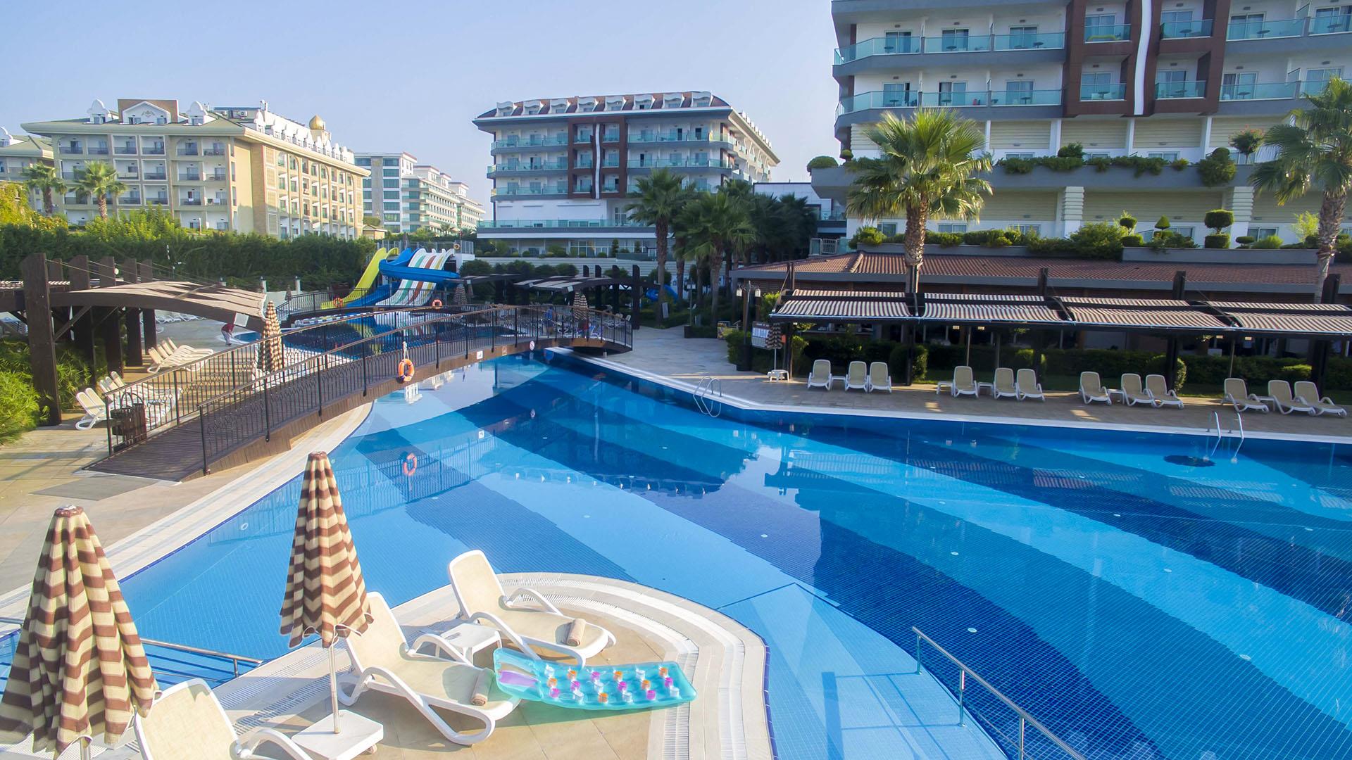 Adalya Ocean Deluxe расположен на частном песчано-галечном пляже, в турецком курорте Эвренсеки.