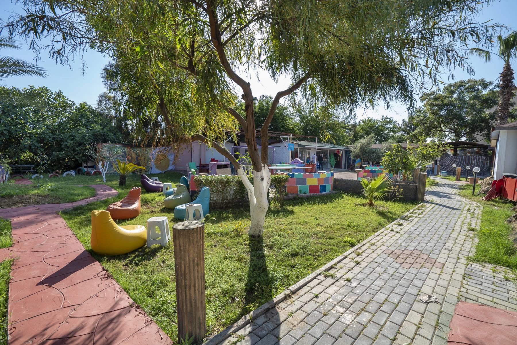 На территории есть все условия для отдыха: открытые бассейны для взрослых и детей. Для малышей оборудована игровая площадка.