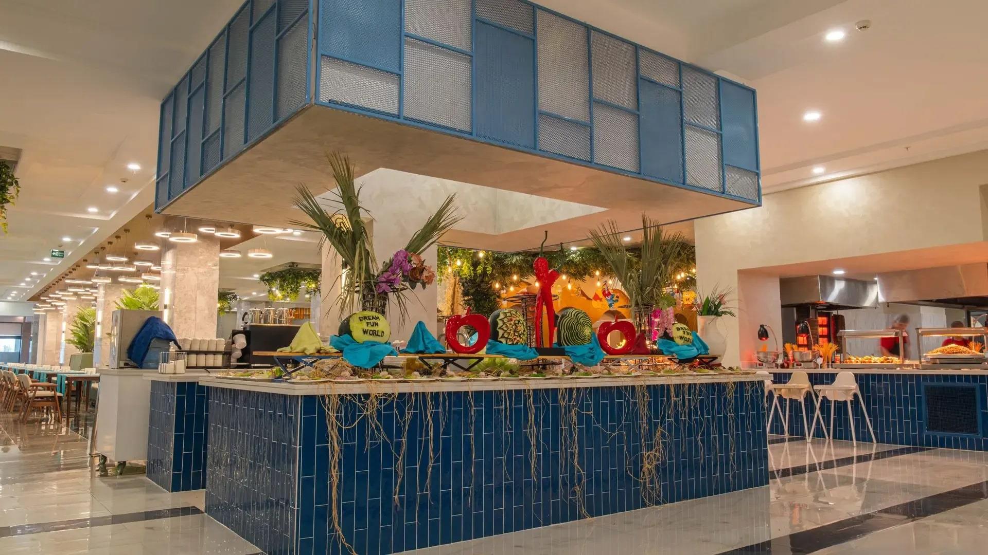 На территории отеля работают главный ресторан, ресторан а-ля карте, кондитерская, лобби-бар, бар Panaroma, бар Olive, пляжный бар, снек-ресторан.