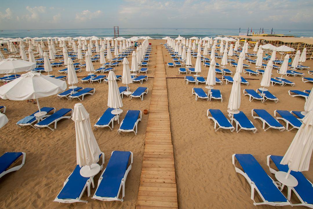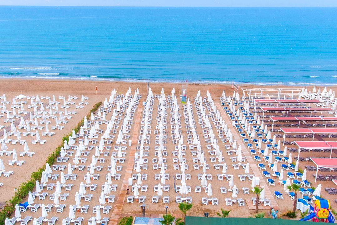 Отель Dream World and SPA находится не более чем в трехстах метрах от собственного благоустроенного пляжа. Каждые полчаса отельный трансфер отвозит туристов к берегу. Частный пляж гостиницы настолько просторен, что даже в самый пик сезона удается найти укромный уголок для безмятежного отдыха. Разместившись под нарядными белоснежными зонтами, отдыхающие наслаждаются жарким южным солнцем и отменными закусками пляжного кафе. С полудня и до вечера здесь сервируется разнообразный шведский стол, наполняемый всякими вкусностями, пастой и фруктами. А устроившаяся на ковре турчанка угощает всех желающих горячими лепешками гезлеме. Хорошенько размяться после сытной еды помогают веселые аниматоры, зазывающие принять участие в пляжных играх – волейбол и бочча.