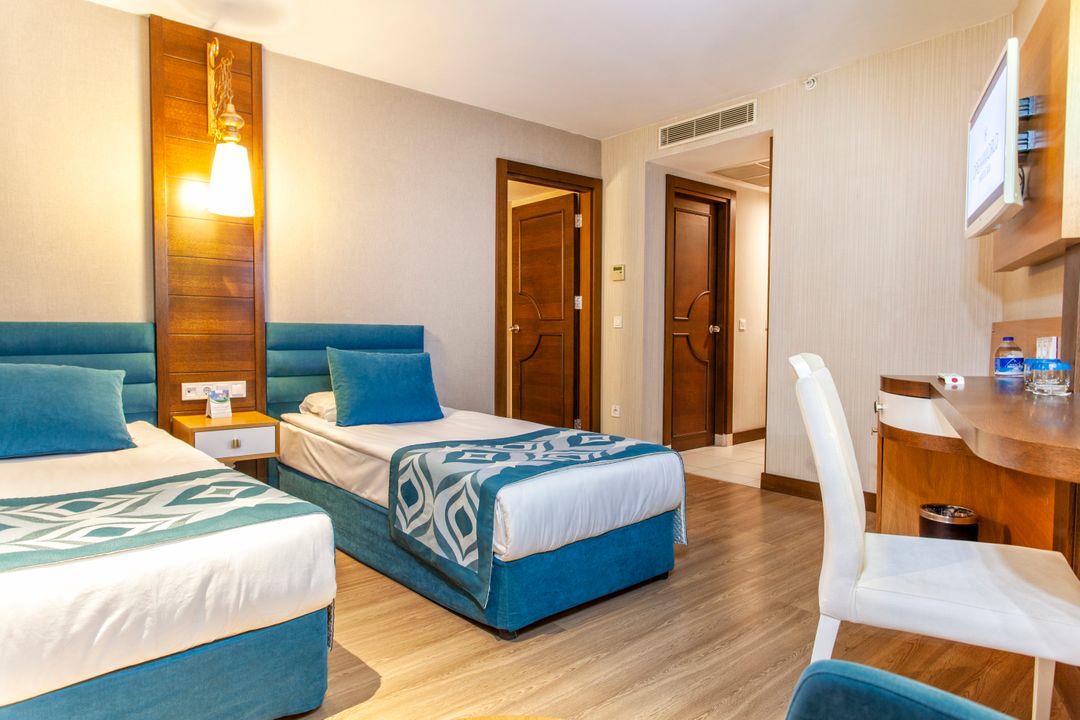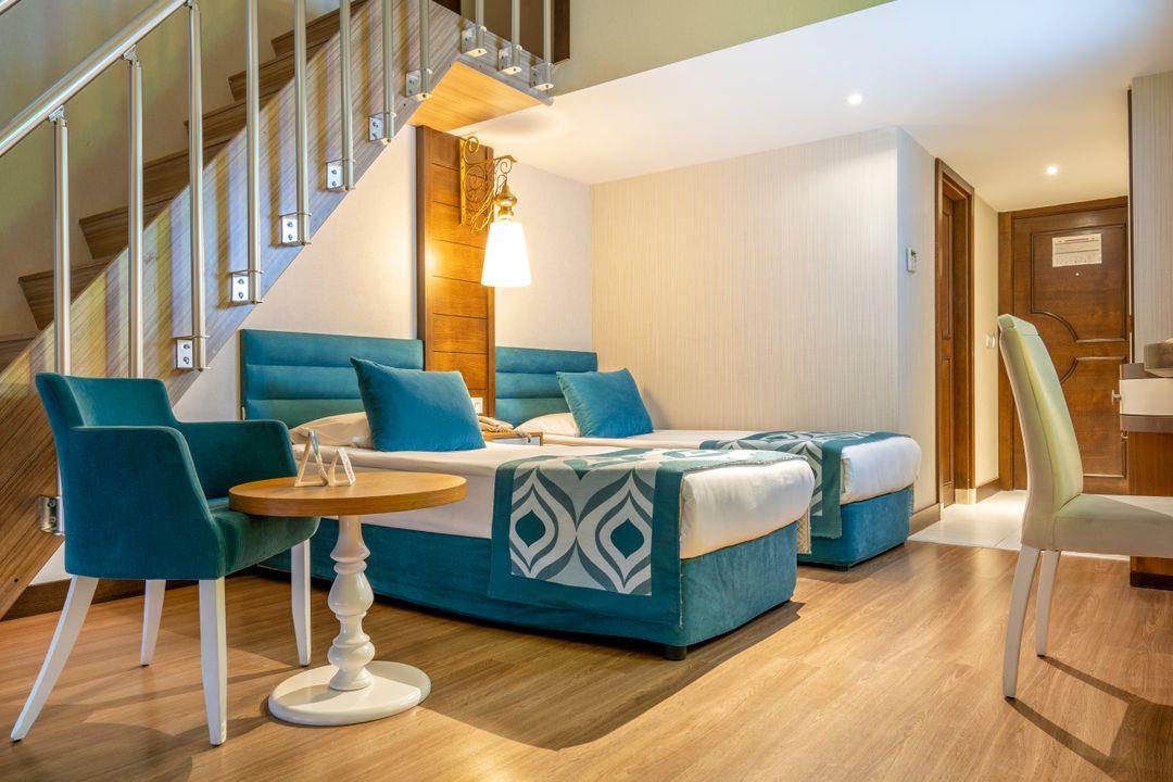 Лазурные, белые, бежевые и светло-коричневые цвета в оформлении современных номеров, определенно, напоминают здешнее лазурное море и приятный золотистый песок, устилающий побережье курорта. Ненавязчивость интерьеров и полное умиротворение царят в гостевых комнатах.