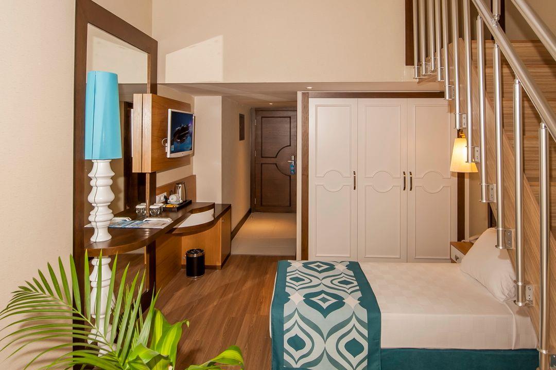 Светлые и элегантные номера обладают современной ванной комнатой, приятно радующей наличием фена и набором косметических средств, который непременно пополняется по необходимости. Небольшая терраса, обращенная к внутреннему дворику гостиницы, служит приятным местом для вечернего отдыха. В номерах, как и во всех помещениях отеля Dream World and SPA , работает бесплатный wi-fi, поддерживающий статус он-лайн даже во время желанного отпуска. Большой плазменный телевизор транслирует ряд интернациональных каналов спутникового телевидения, в том числе и музыкальных. Бесплатный мини-бар ежедневно пополняется прохладительными напитками и соками, а встроенный в шкаф секретный сейф, в обмен на небольшое вознаграждение, надежно хранит ценности жителей гостиницы.
