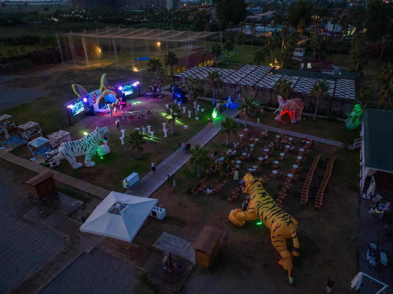 Спорт и развлечение: тренажерный зал, аэробика, настольный теннис, баскетбол, пляжный волейбол, пляжный футбол,стрельба из лука, дарт, фрисби и др.,сауна, турецкая баня, джакузи, шоу-программы, взрослая и детская (4-12 и 13-17 лет)анимация, 6 теннисных кортов (днем), прокат теннисных ракеток и мячей(залог), виндсерфинг (с лицензией), каноэ, водный велосипед.