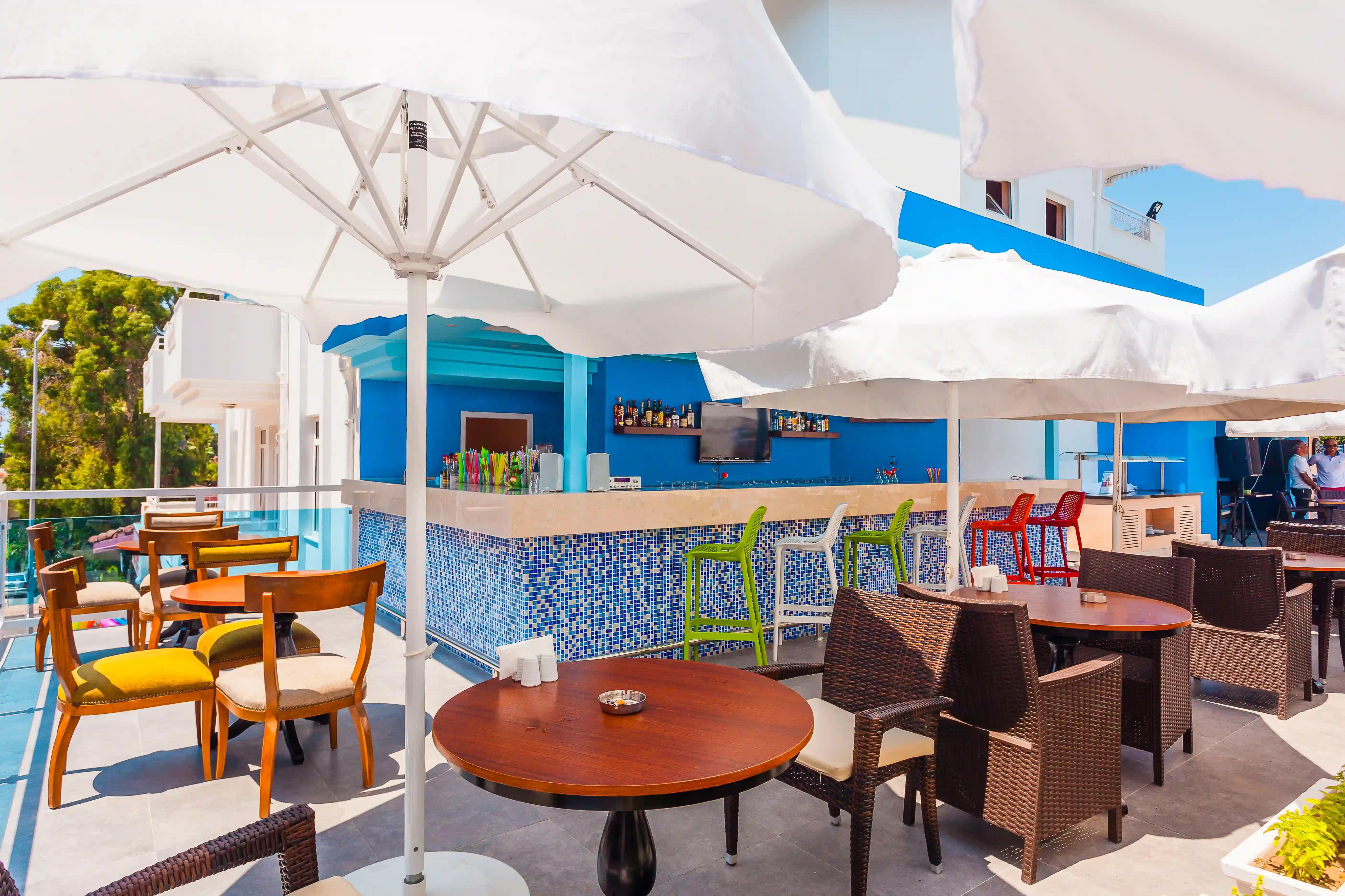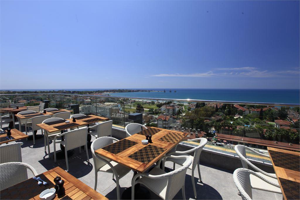 По утрам для гостей сервируют сытный завтрак (шведский стол), в остальное время дня здесь можно заказать блюда средиземноморской и турецкой кухни (по меню), а в баре – коктейли.